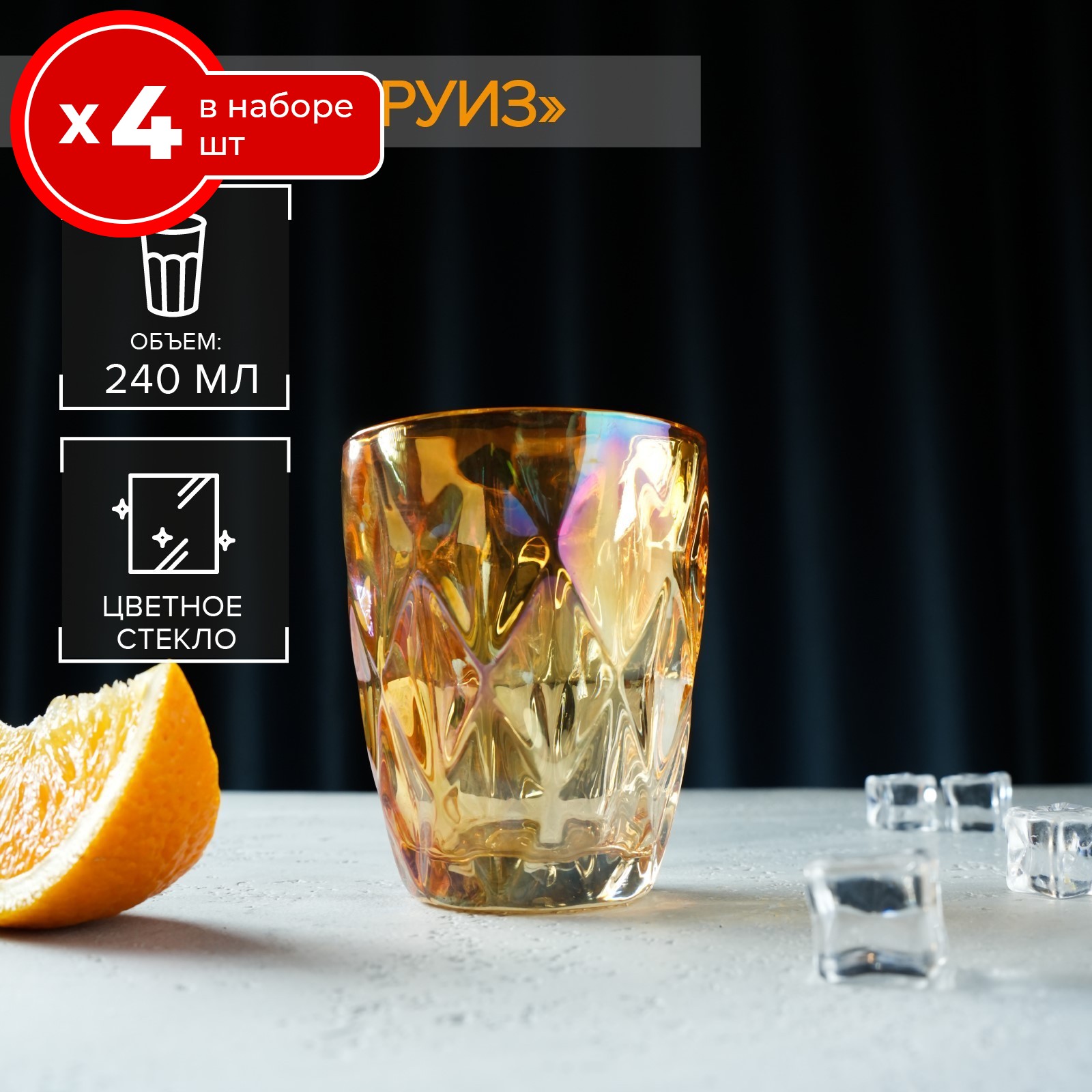 Набор стаканов 4 шт 240 мл Magistro круиз, для воды и сока стекло подарочные