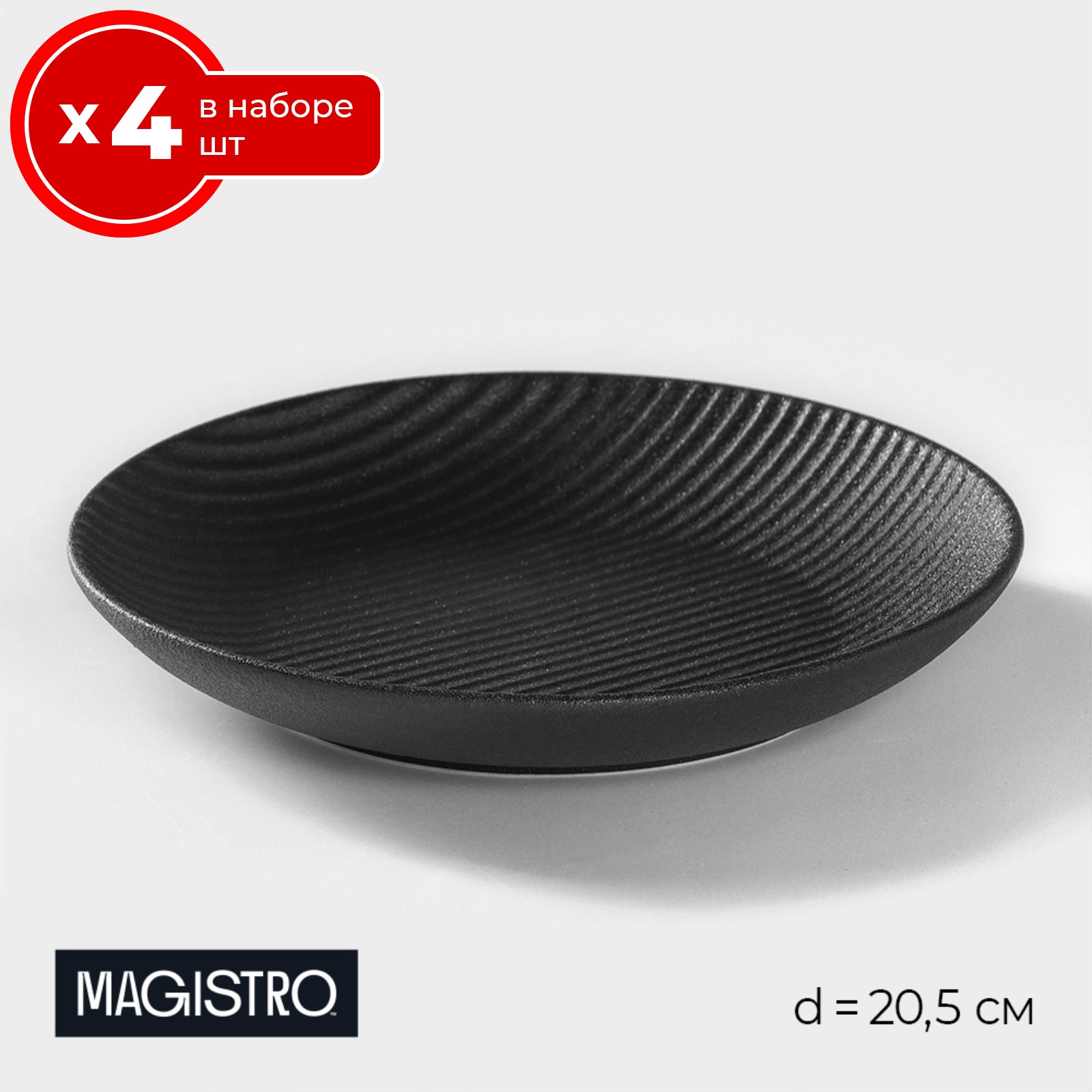 Набор тарелок 4 шт десертных обеденных 20.5 см на 4 персоны Magistro Line, фарфор, мелкие закусочные