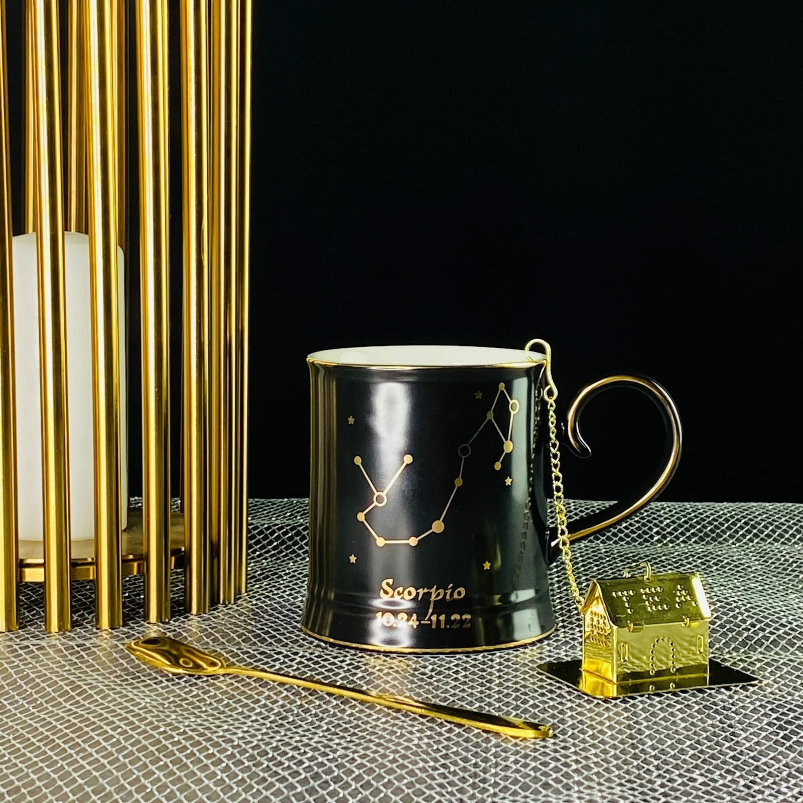 4шт кружка 360мл с ложкой и фильтром скорпион в под.уп. фарфор.
