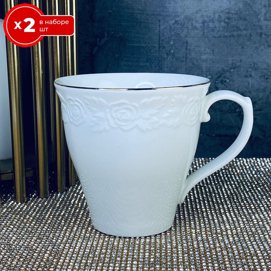 Набор из 2 кружек Lenardi белая роза 350 мл, фарфор, чашки для чая и кофе 2 шт
