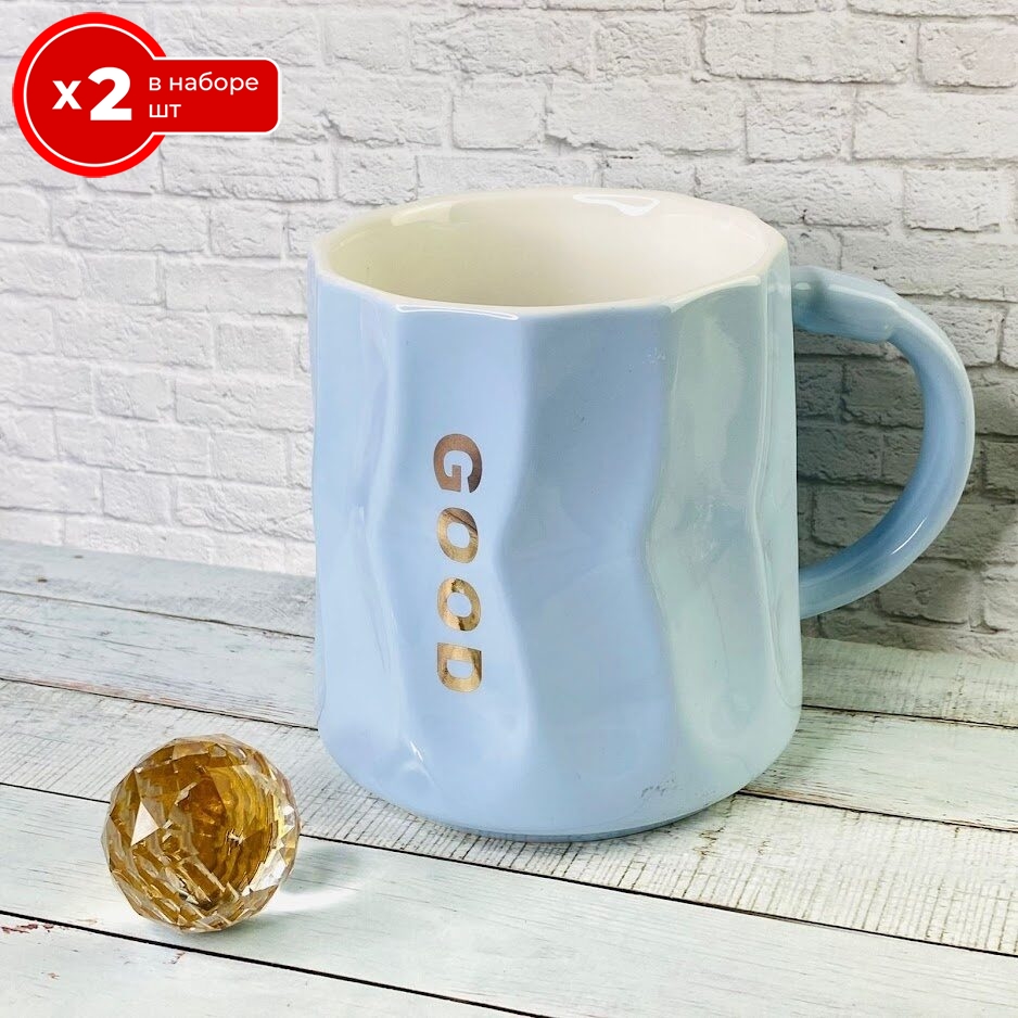 Набор из 2 кружек Lenardi Hello 400 мл, фарфор, чашки для чая и кофе 2 шт