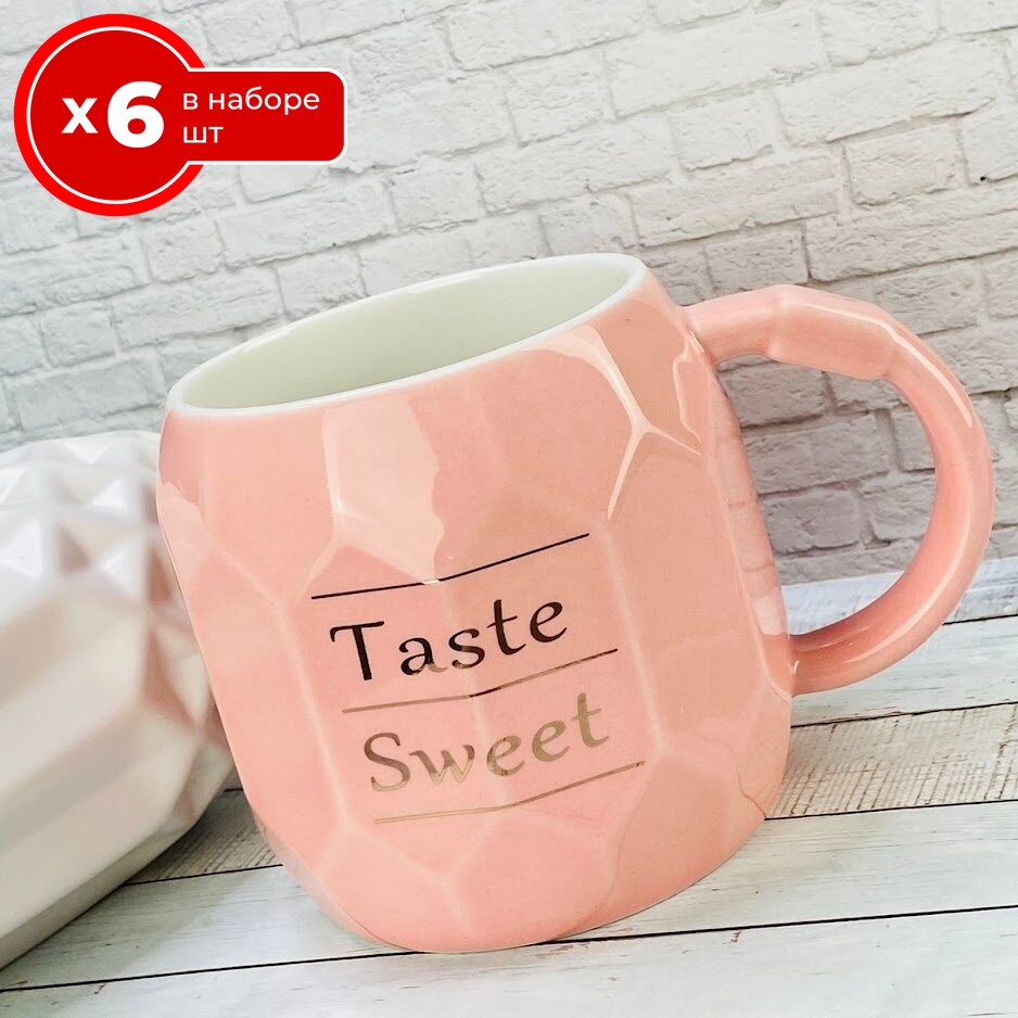 Набор из 6 кружек Lenardi Hello 400 мл, фарфор, чашки для чая и кофе 6 шт