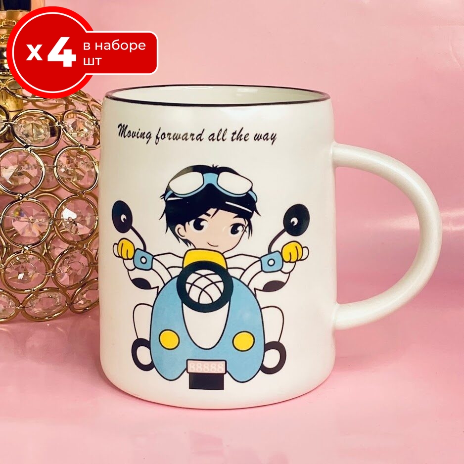 Набор из 4 кружек Lenardi Moving Forward 450 мл, фарфор, чашки для чая и кофе 4 шт