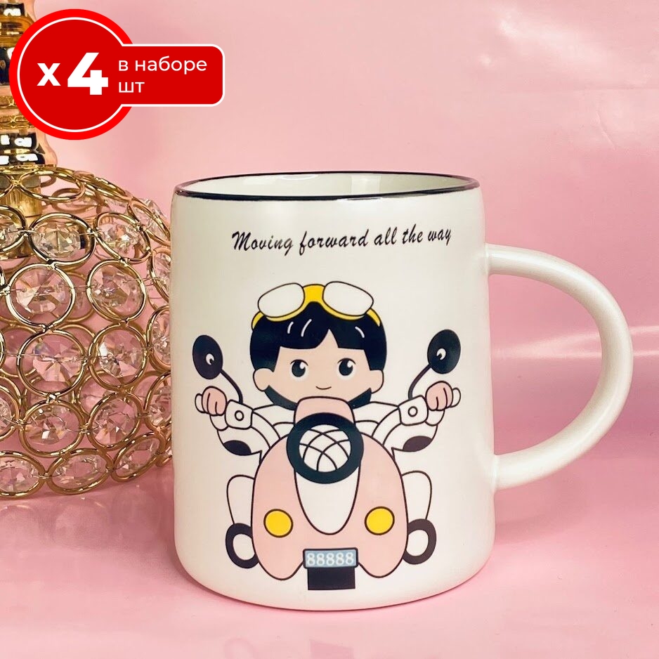 Набор из 4 кружек Lenardi Moving Forward 450 мл, фарфор, чашки для чая и кофе 4 шт