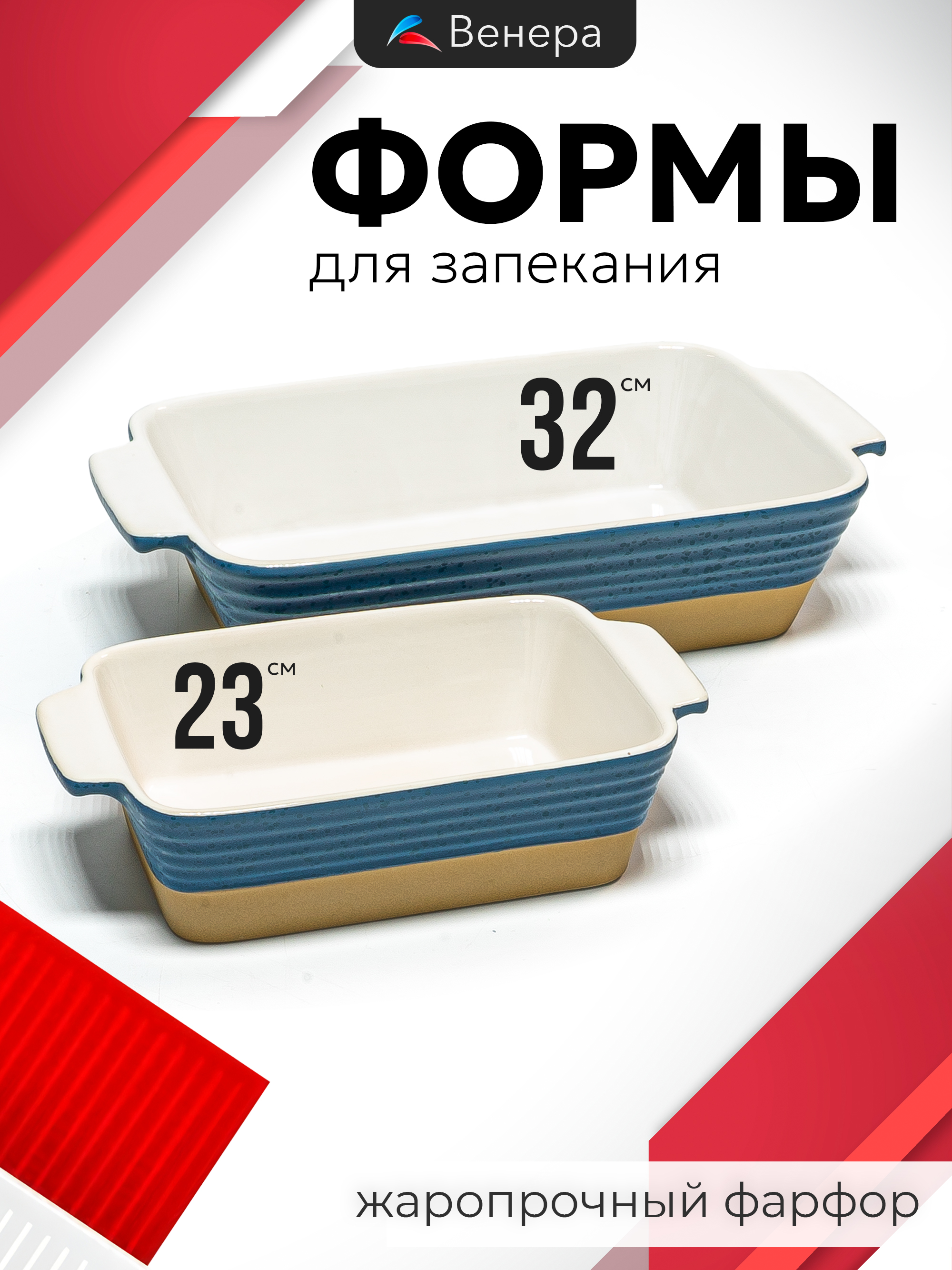 Набор из 2 прямоугольных блюд для запекания 32/23см в под.уп. фарфор