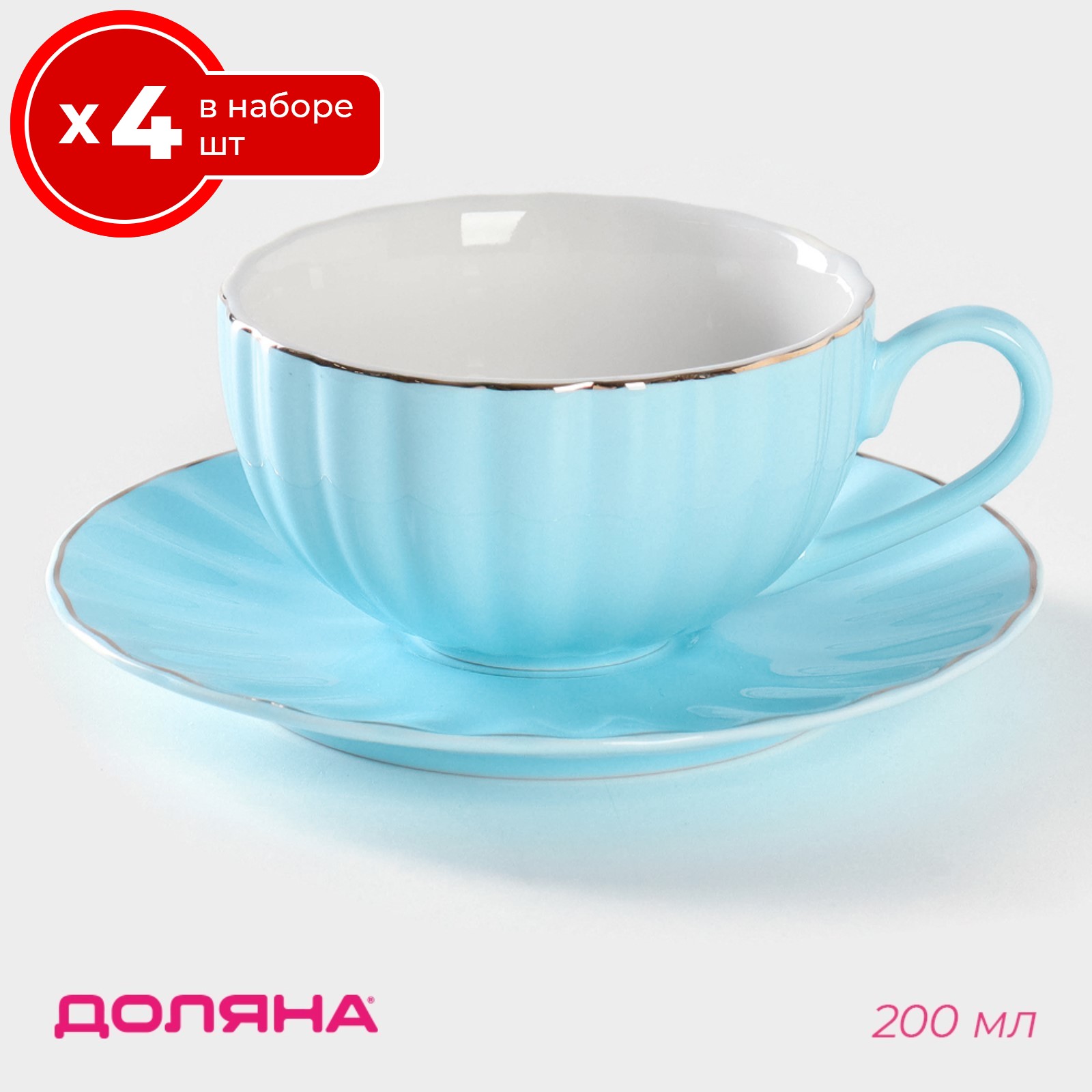 Чайный набор на 4 персоны доляна , сервиз 8 предметов: 4 шт чашки 200 мл и блюдца из фарфора, подарочный