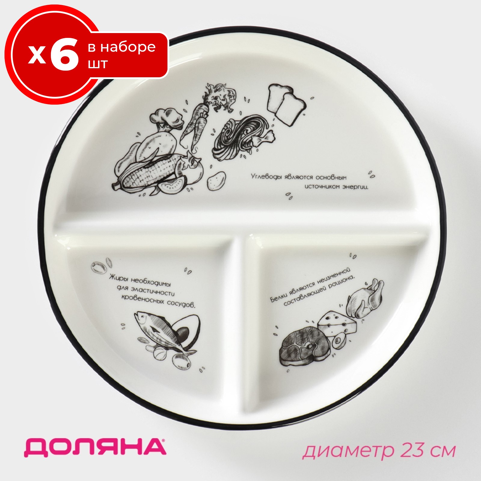 Набор тарелок 6 шт обеденных столовых 23 см на 6 персон доляна , фарфор, мелкие