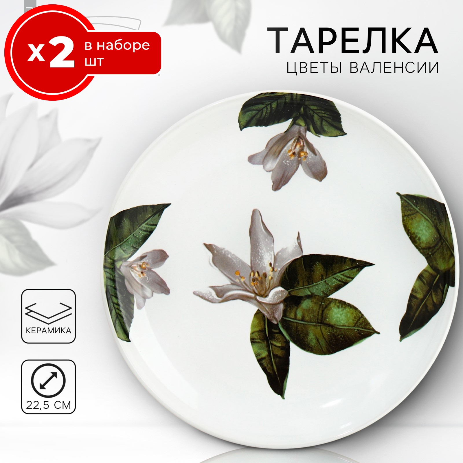 Набор тарелок 2 шт десертных обеденных 22.5 см на 2 персоны Dolce Ceramo. Lemon Flowers, керамика, мелкие закусочные