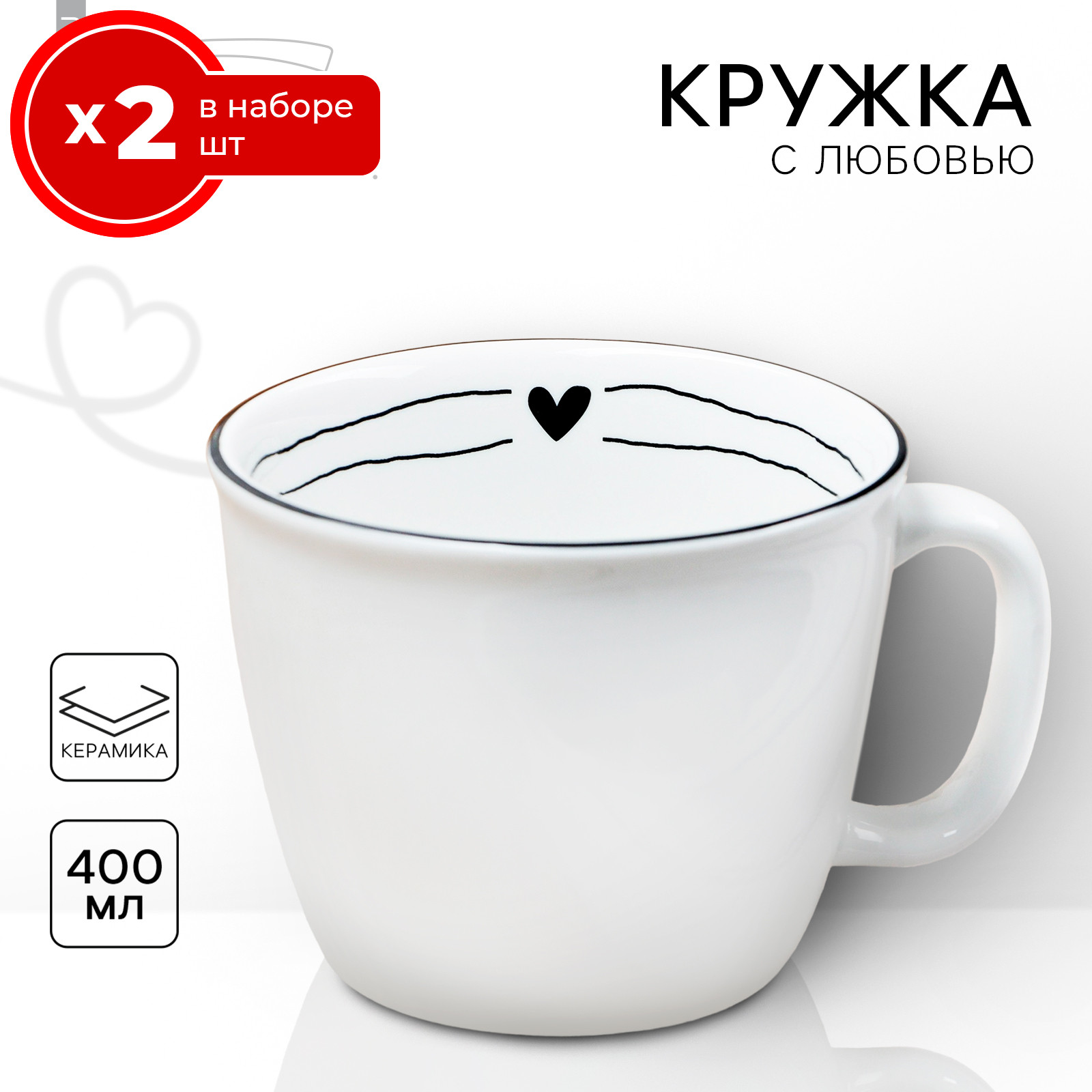 Набор из 2 кружек Dolce Ceramo. 400 мл, керамика, чашки для чая и кофе 2 шт