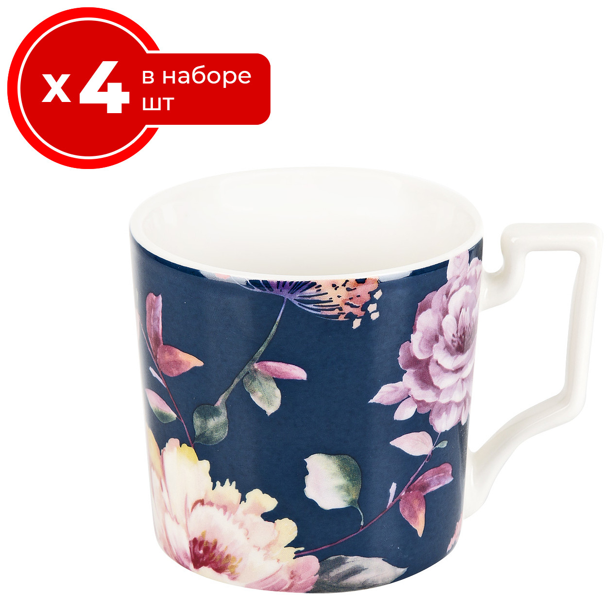 Набор из 4 кружек Nouvelle Floristry 380 мл, фарфор, чашки для чая и кофе 4 шт