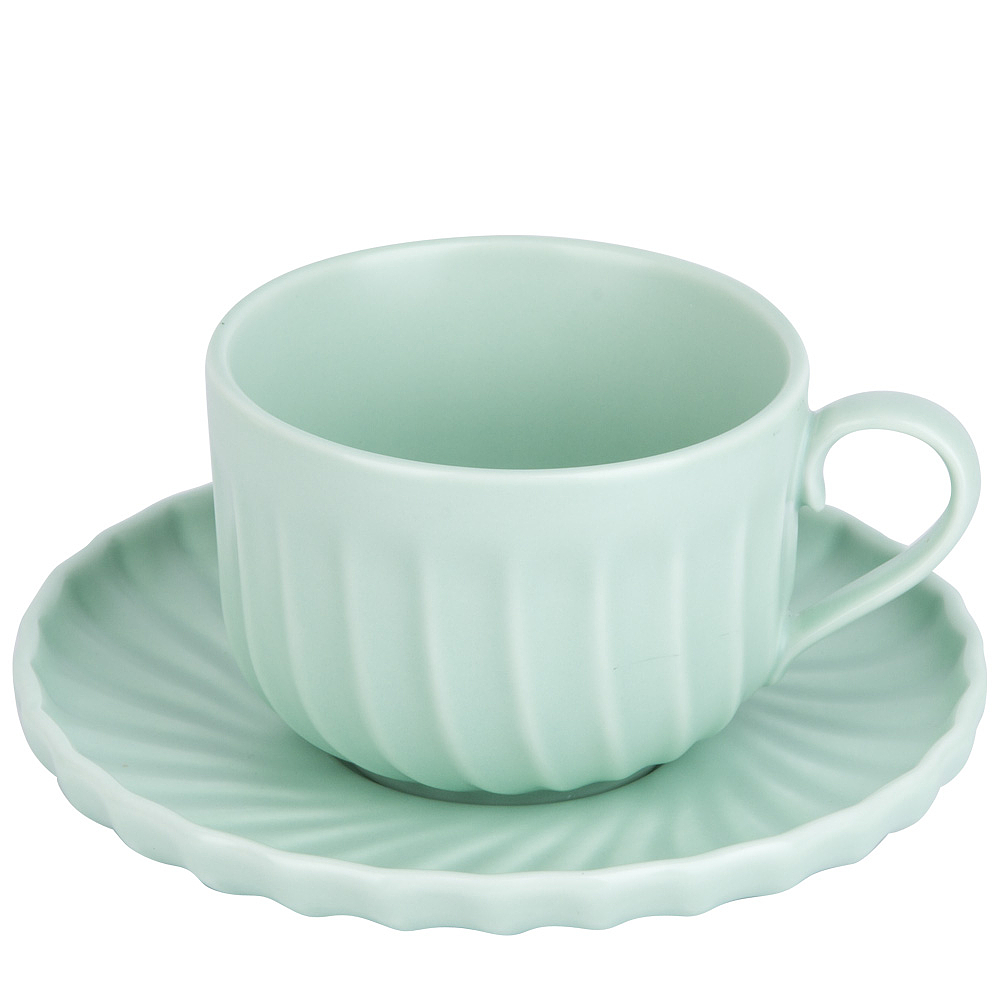 4шт чайная пара fresh taste. light green 220мл . ребристая поверхность. Размер чашки - 11,5х8,5х6,5 см, размер блюдца - 14,5х14,5х2 см