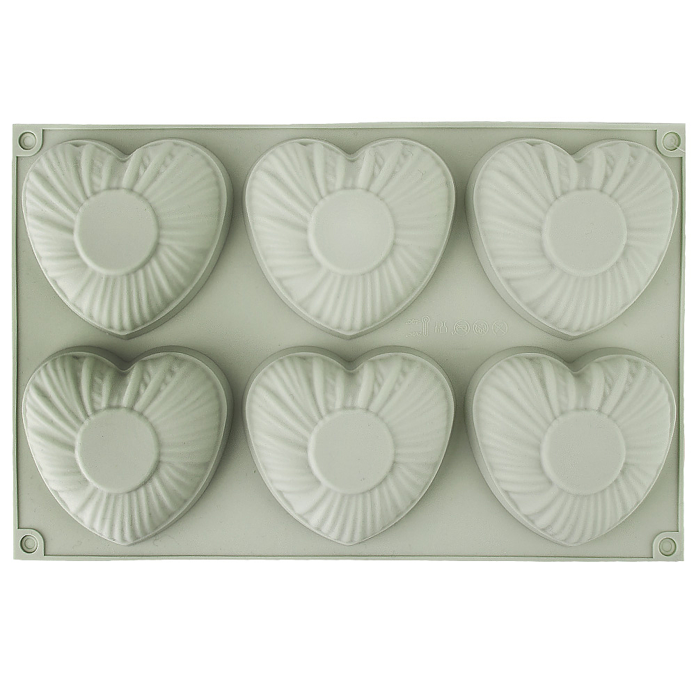 форма силиконовая для выпечки 6 ячеек сердце 28,5x18,5x3см . Размер ячейки: 7х7х2,5 см Форма силиконовая для выпечки 6 ячеек Сердце 28,5*18,5*3см (силикон) (упаковочный пакет) Упаковка: Без индивидуальной упаковки Диаметр, см: 7 Цвет основной: Зеленый Комплектация: Форма - 1 шт Использование в СВЧ: Да Мытье в посудомоечной машине: Да Рисунок: Без рисунка Форма: Прямоугольная  развернуть описание ▼
