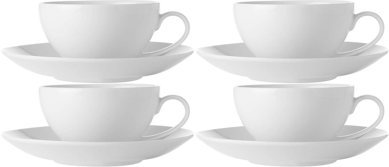 Чайный набор на 4 персоны Maxwell & Williams белая коллекция, сервиз 8 предметов: 4 шт чашки 250 мл и блюдца из фарфора, подароч