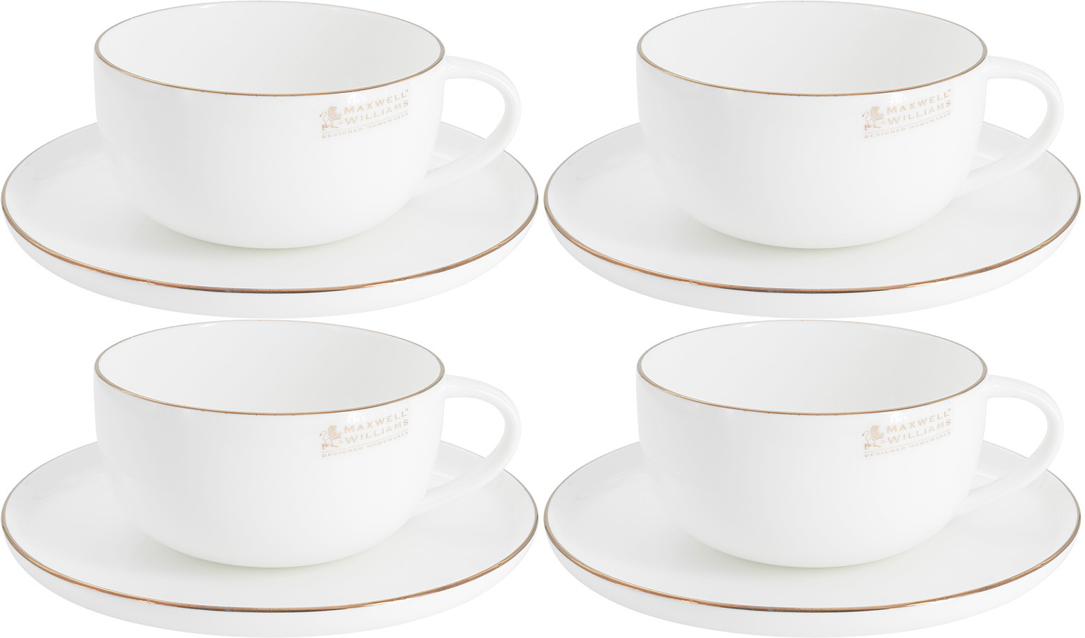 Чайный набор на 4 персоны Maxwell & Williams кашемир голд, сервиз 8 предметов: 4 шт чашки 300 мл и блюдца из фарфора, подарочный