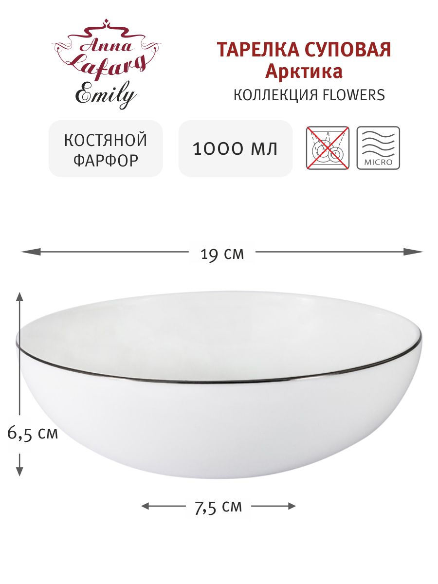 Набор тарелок 6 шт глубоких суповых 19 см на 6 персон Anna Lafarg Emily арктика, костяной фарфор