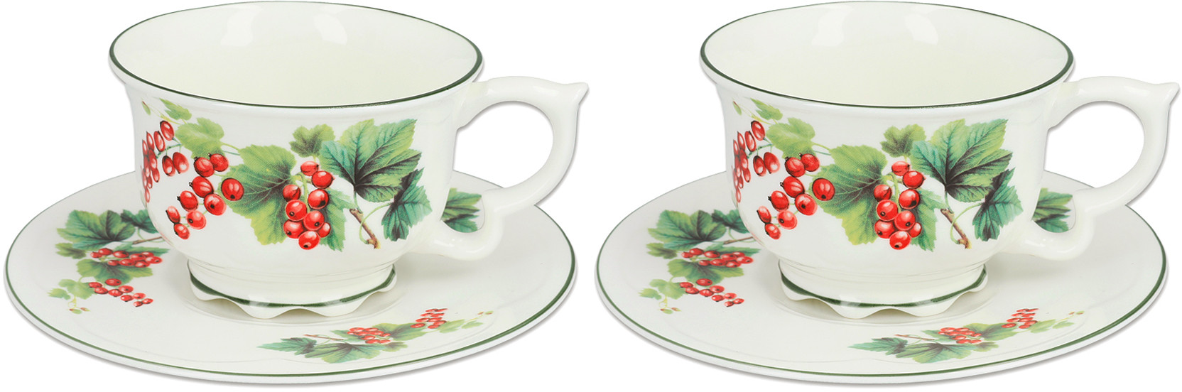 Чайный набор на 2 персоны Carmani английская классика, сервиз 4 предмета: 2 шт чашки 340 мл и блюдца из фарфора, подарочный