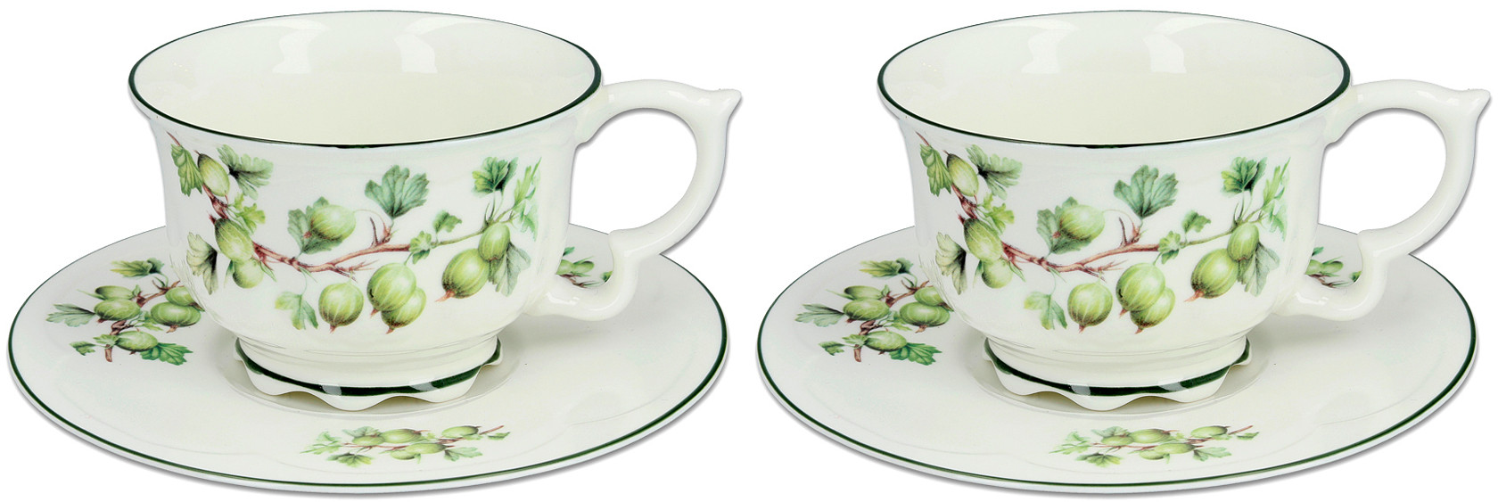Чайный набор на 2 персоны Carmani английская классика, сервиз 4 предмета: 2 шт чашки 340 мл и блюдца из фарфора, подарочный