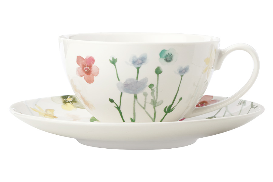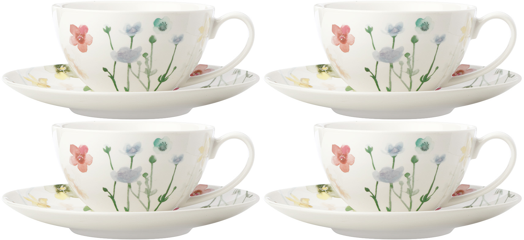 Чайный набор на 4 персоны Maxwell & Williams лесные цветы, сервиз 8 предметов: 4 шт чашки 400 мл и блюдца из фарфора, подарочный