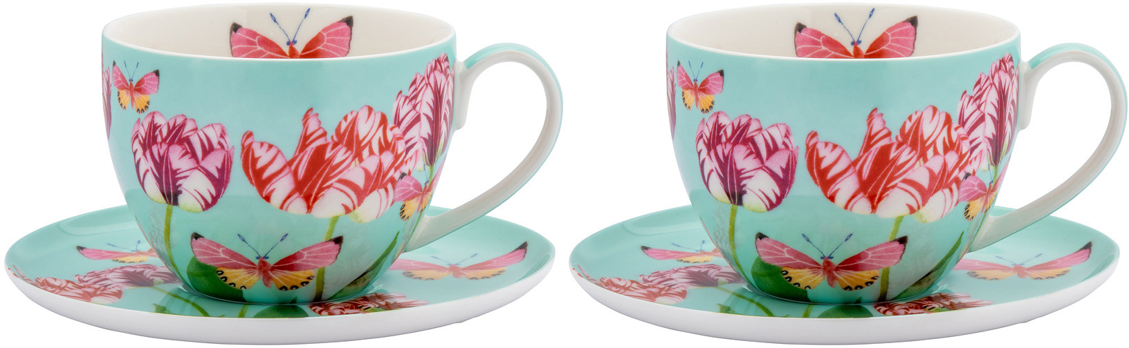 Чайный набор на 2 персоны Maxwell & Williams экзотика, сервиз 4 предмета: 2 шт чашки 400 мл и блюдца из фарфора, подарочный