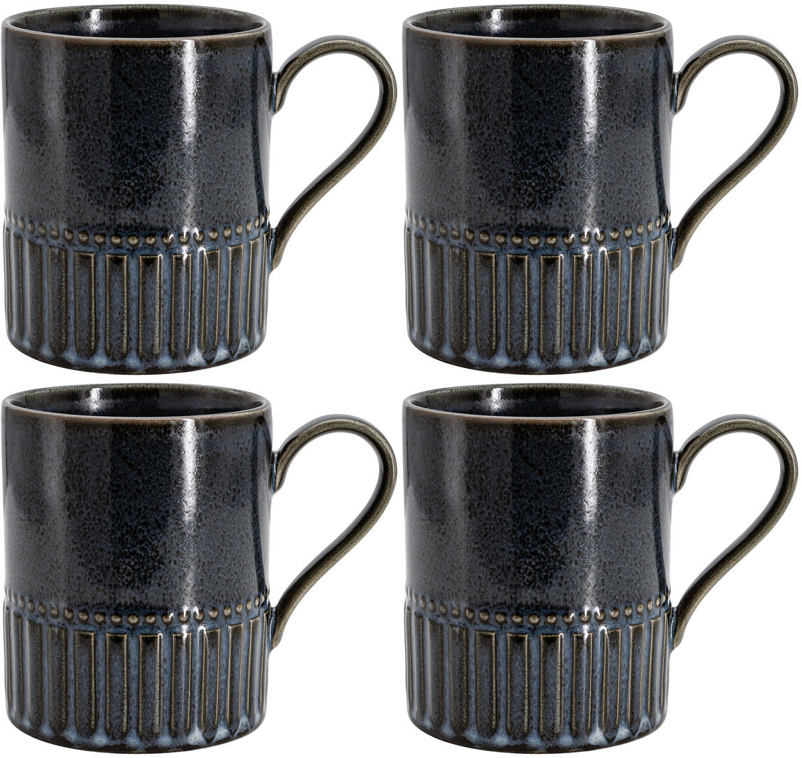 Набор из 4 кружек Home & Style Black Kitchen 400 мл, фарфор, чашки для чая и кофе 4 шт