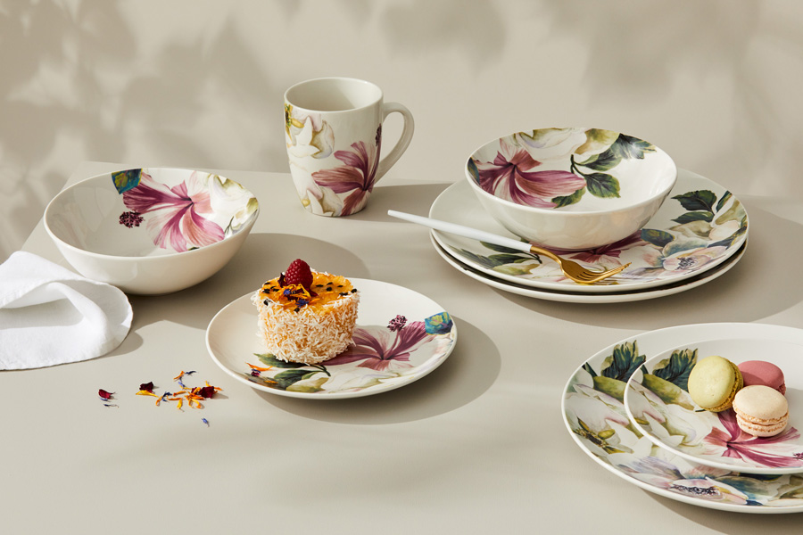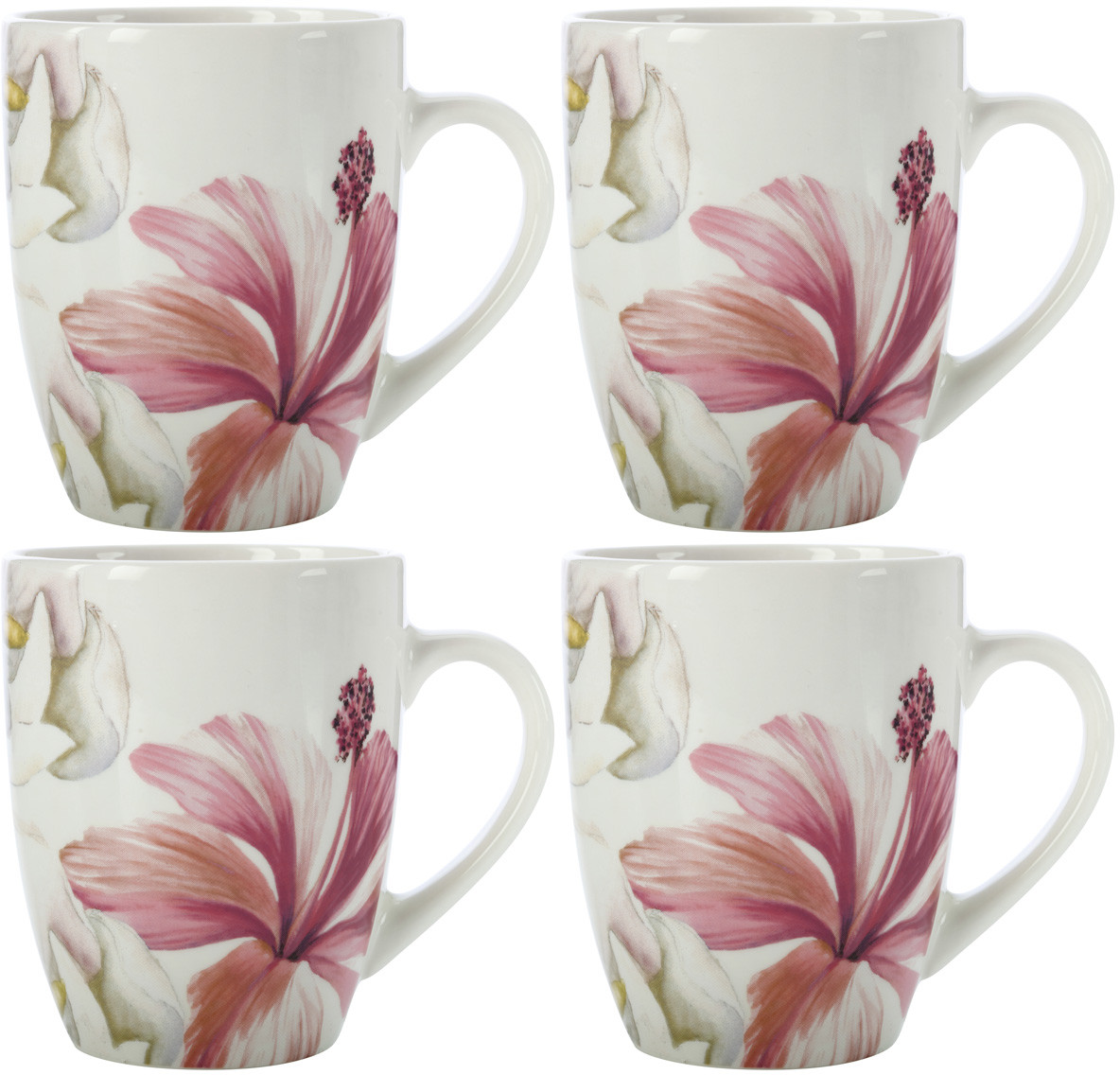 Набор из 4 кружек Casa Domani магнолия 350 мл, фарфор, чашки для чая и кофе 4 шт