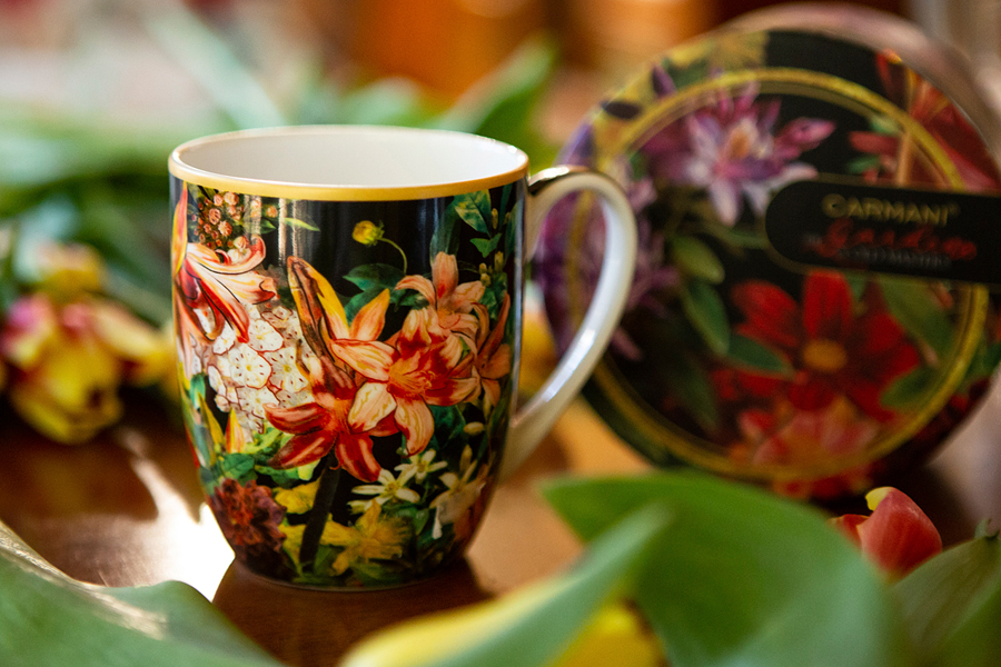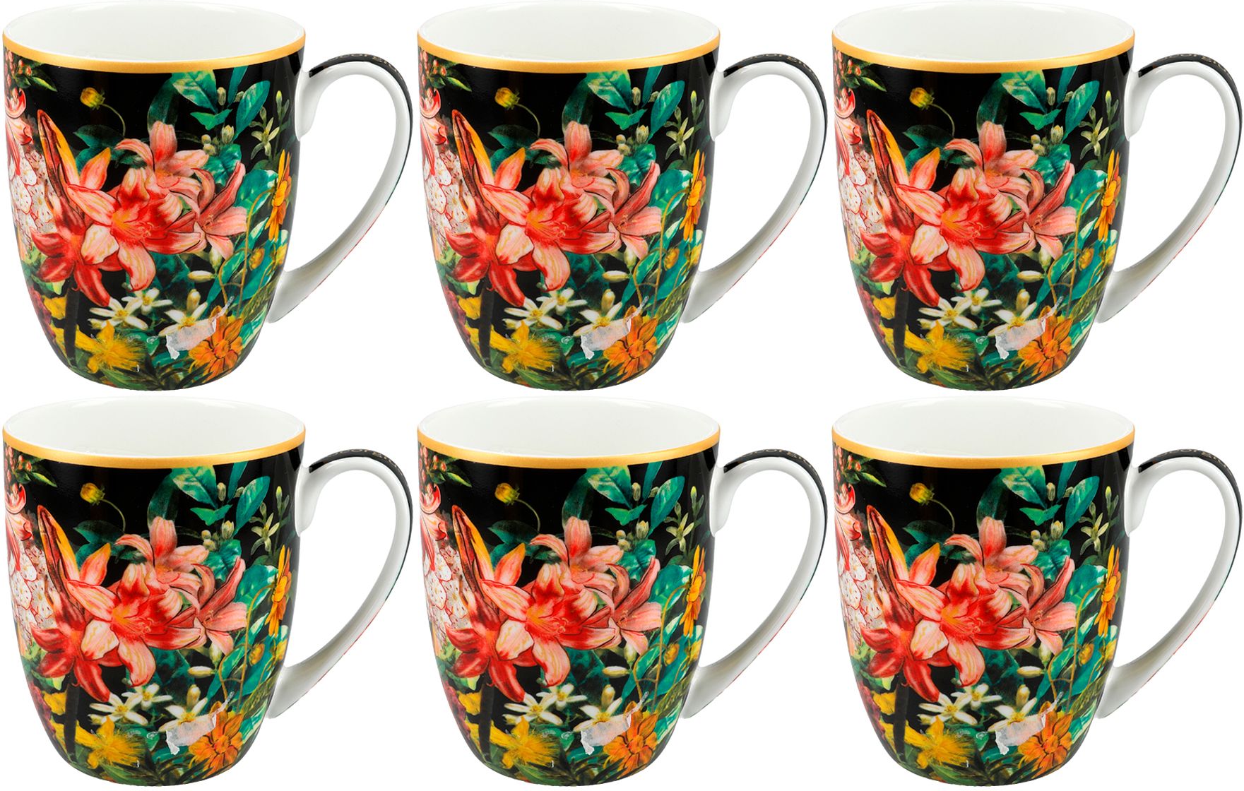 Набор из 6 кружек Carmani цветочная история 400 мл, костяной фарфор, чашки для чая и кофе 6 шт