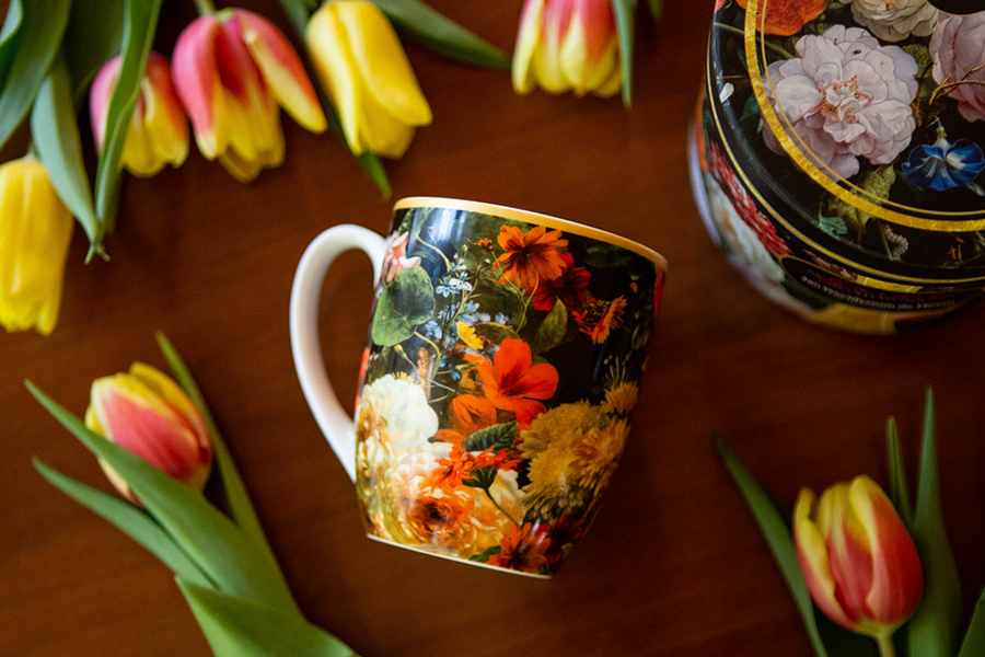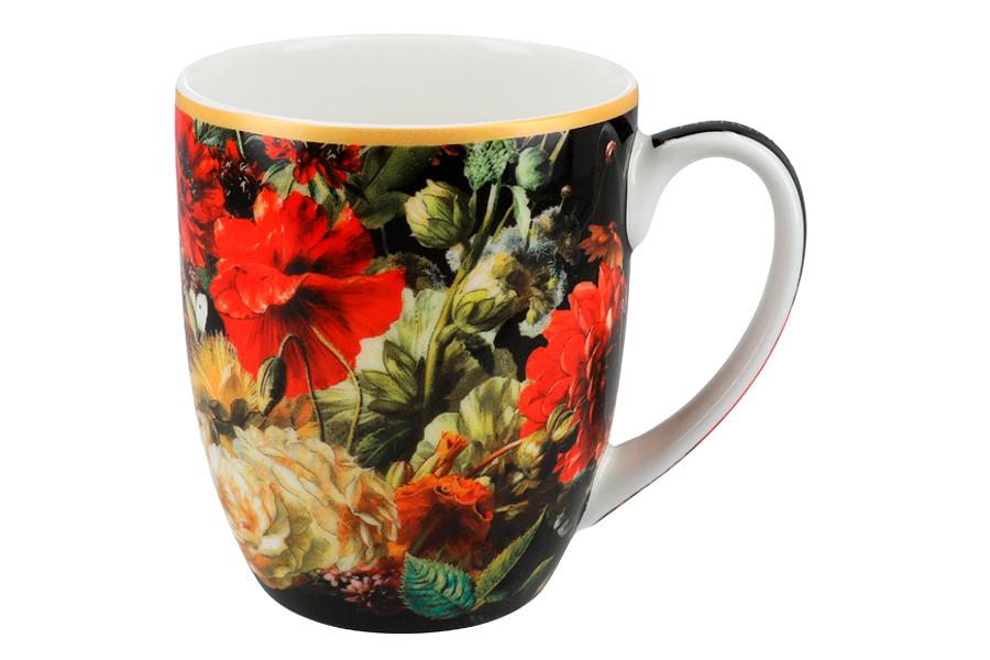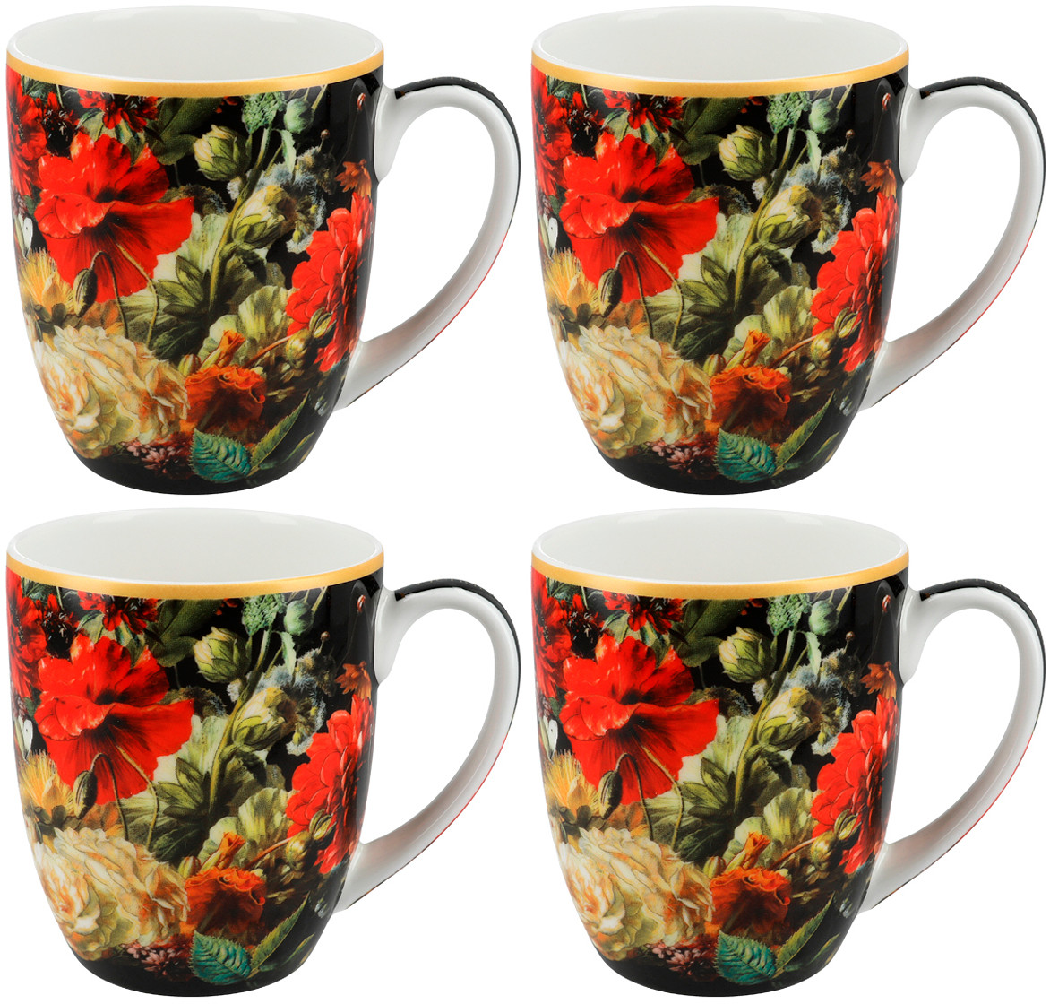 Набор из 4 кружек Carmani цветочная история 400 мл, костяной фарфор, чашки для чая и кофе 4 шт