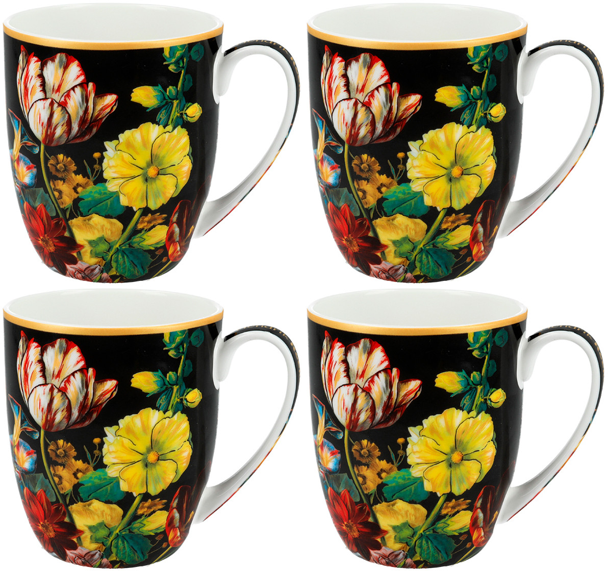 Набор из 4 кружек Carmani цветочная история 400 мл, костяной фарфор, чашки для чая и кофе 4 шт