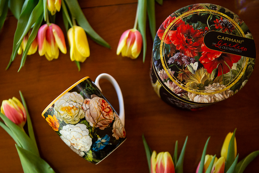 Набор из 6 кружек Carmani цветочная история 400 мл, костяной фарфор, чашки для чая и кофе 6 шт