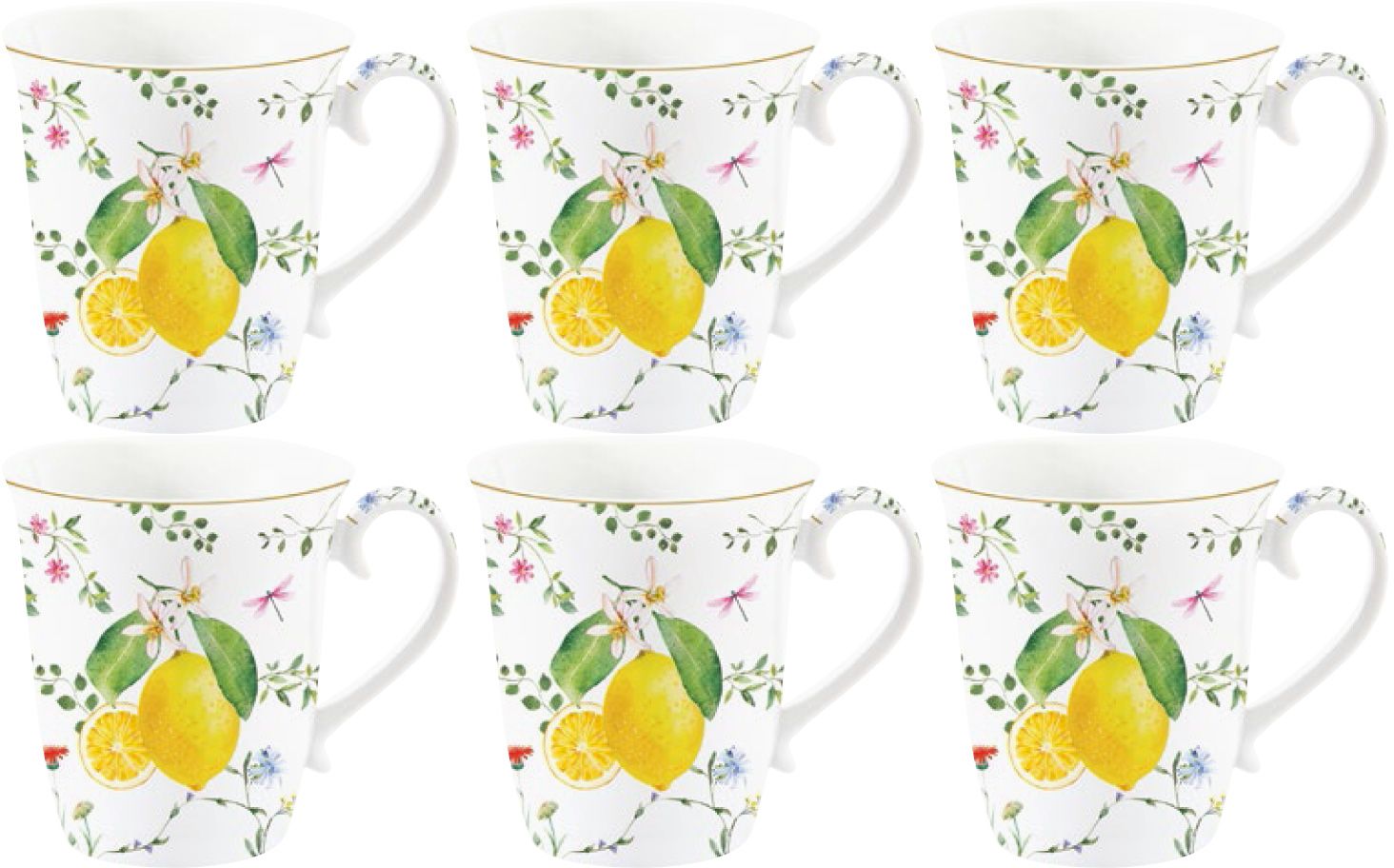 Набор из 6 кружек Easy Life цветы и лимоны 275 мл, фарфор, чашки для чая и кофе 6 шт