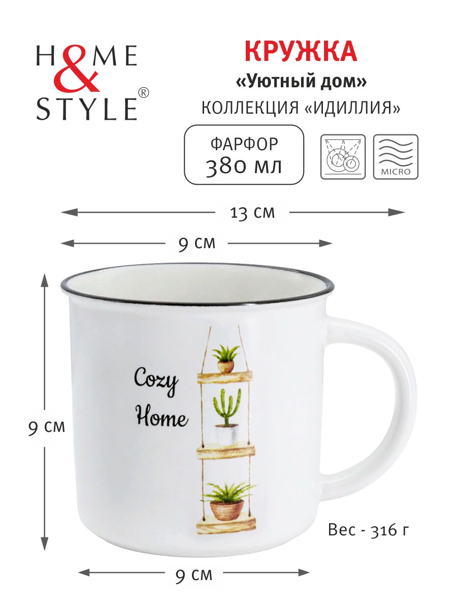 Набор из 6 кружек Home & Style идиллия 350 мл, фарфор, чашки для чая и кофе 6 шт