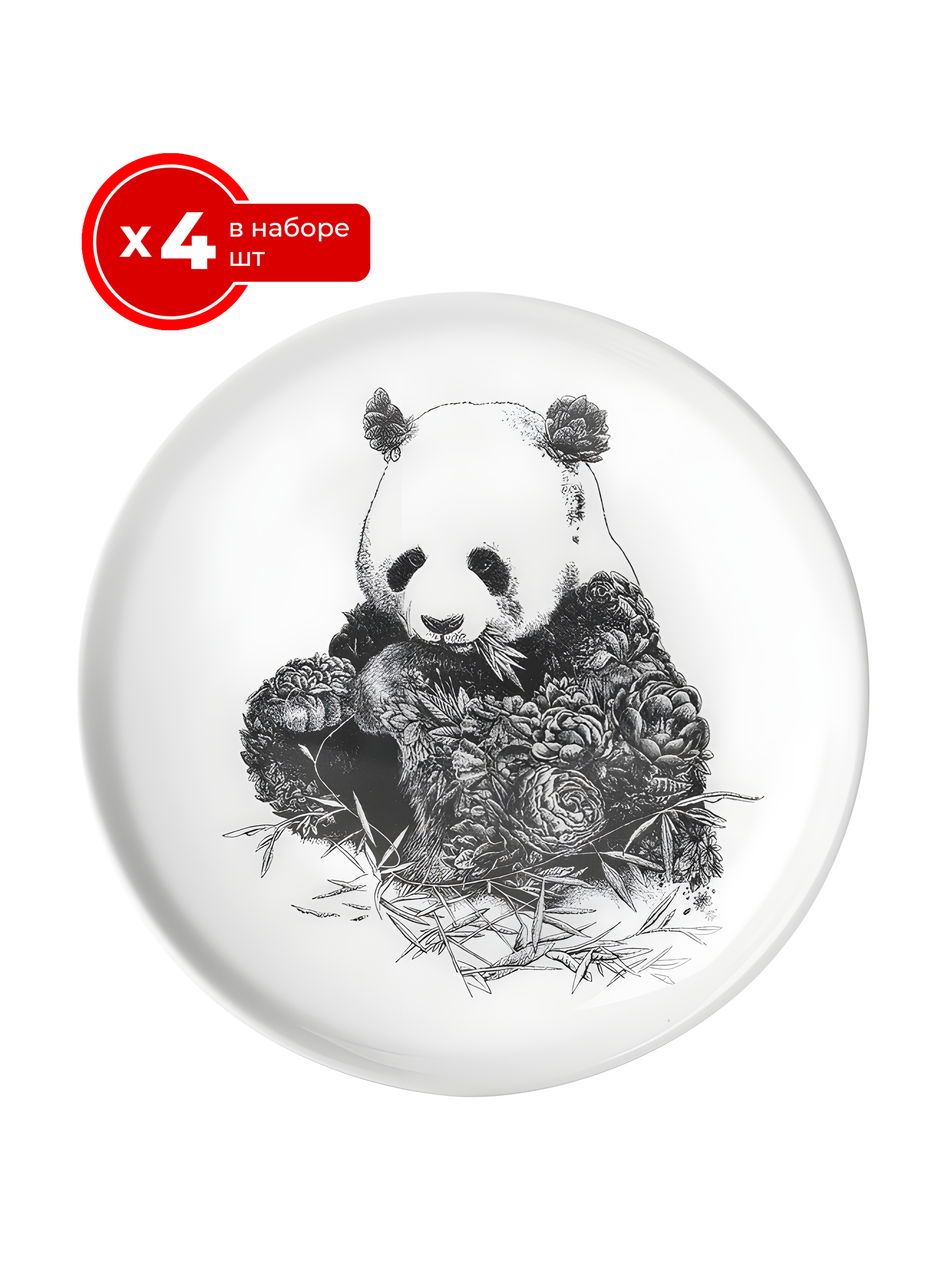 Набор десертных тарелок 4 шт., 20 см, фарфор P, белая, панда, Marini Ferlazzo