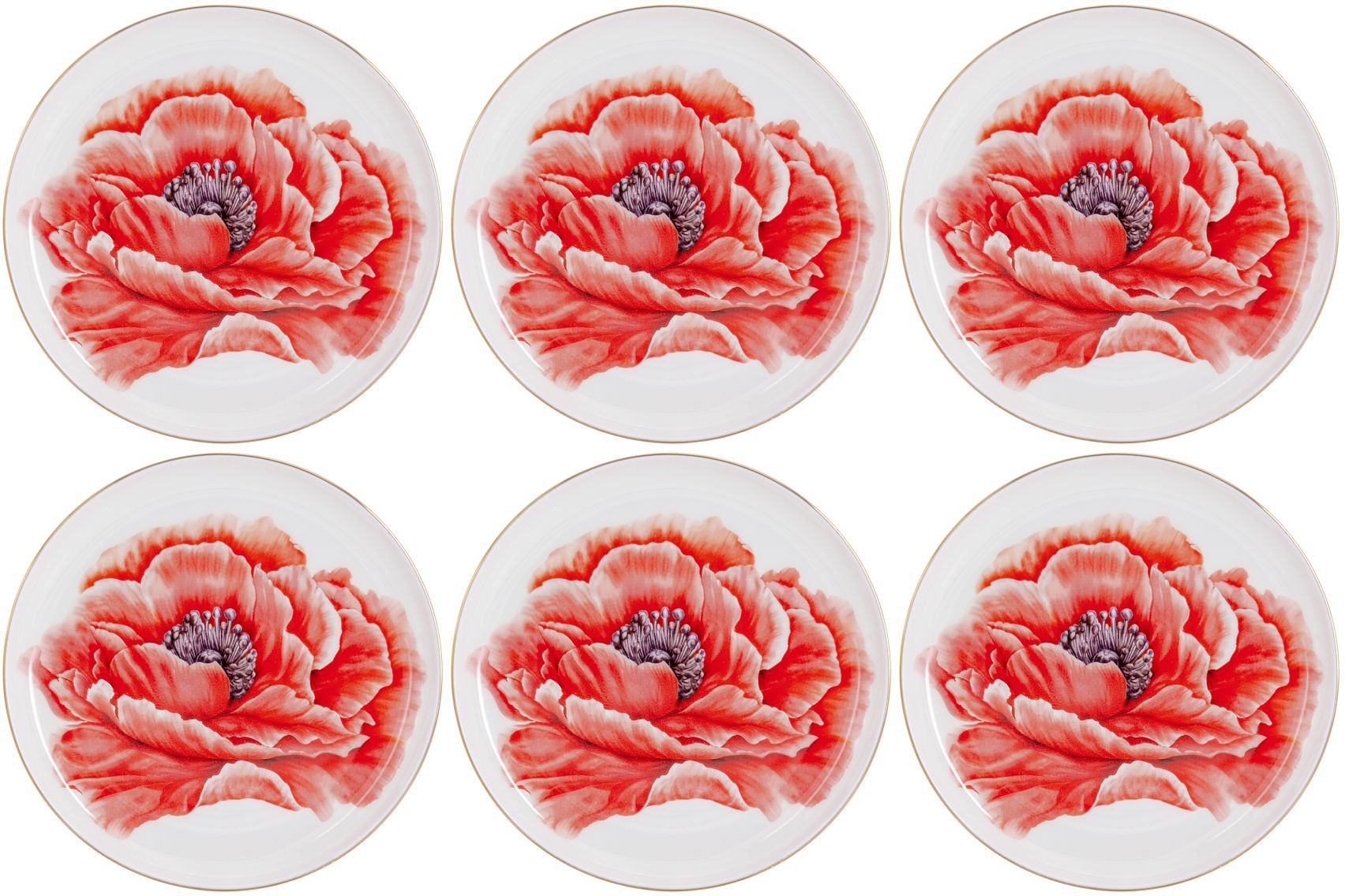 Набор тарелок 6 шт десертных закусочных 19 см на 6 персон Anna Lafarg Emily Flowers, костяной фарфор, мелкие