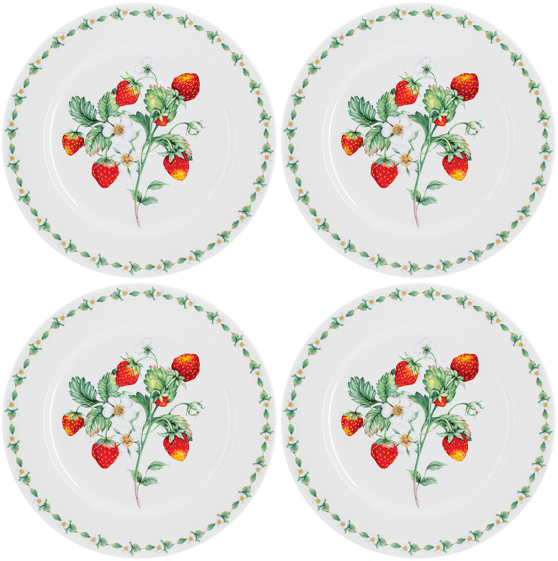 Набор тарелок 4 шт сервировочных обеденных 27 см на 4 персоны Anna Lafarg Emily земляничная поляна, костяной фарфор, столовые ме