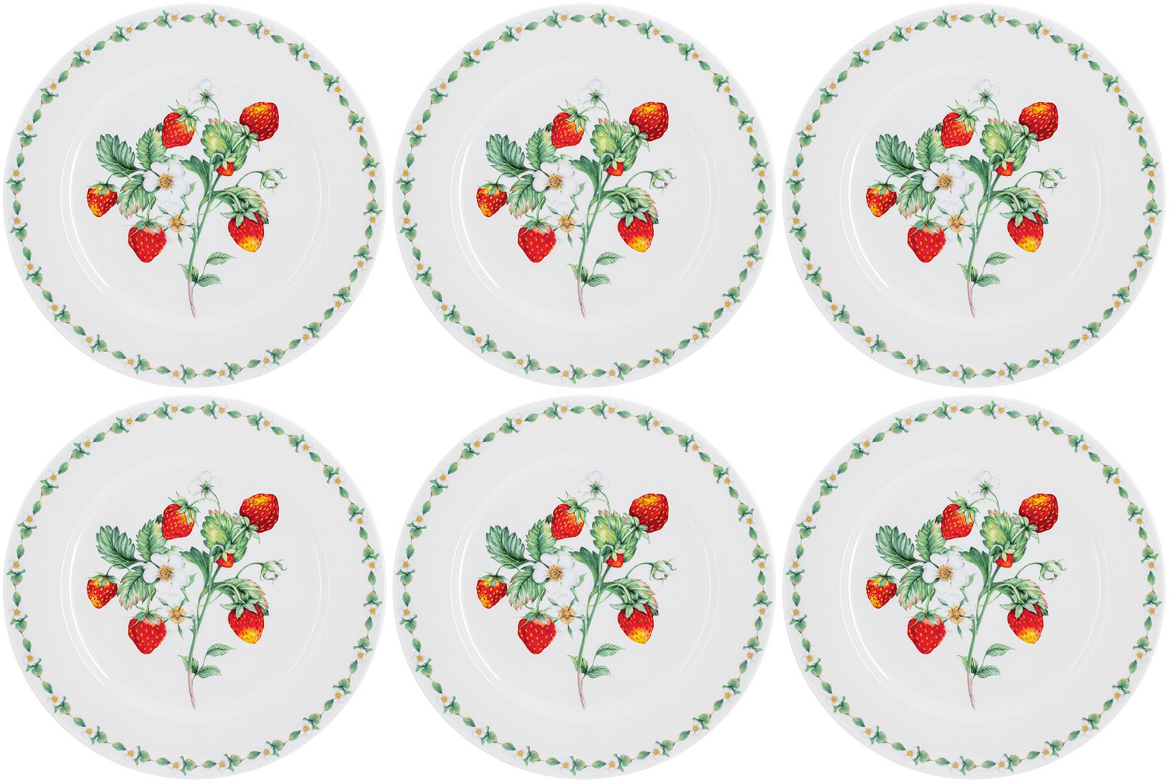 Набор тарелок 6 шт сервировочных обеденных 27 см на 6 персон Anna Lafarg Emily земляничная поляна, костяной фарфор, столовые мел