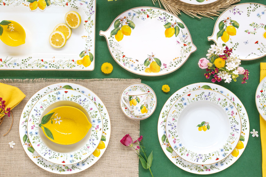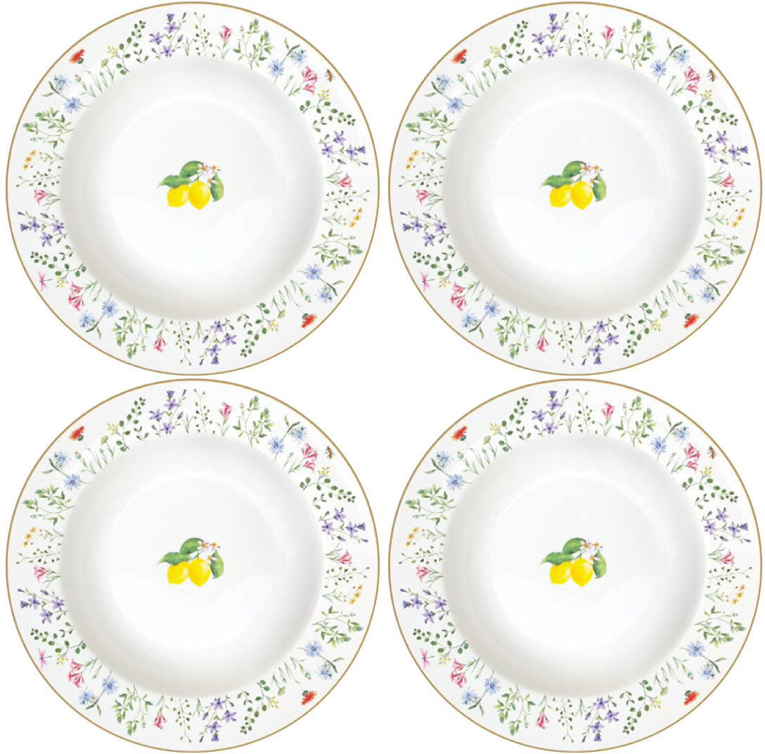 Набор тарелок 4 шт глубоких суповых 21.5 см на 4 персоны Easy Life цветы и лимоны, фарфор