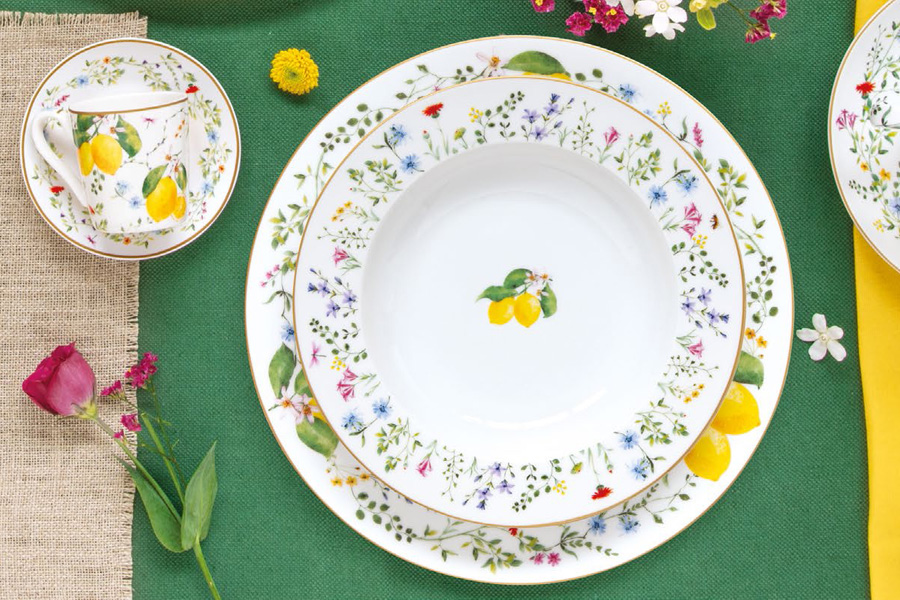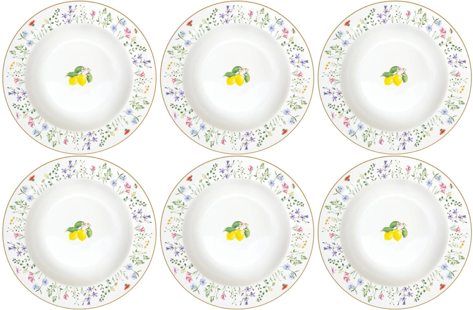 Набор тарелок 6 шт глубоких суповых 21.5 см на 6 персон Easy Life цветы и лимоны, фарфор