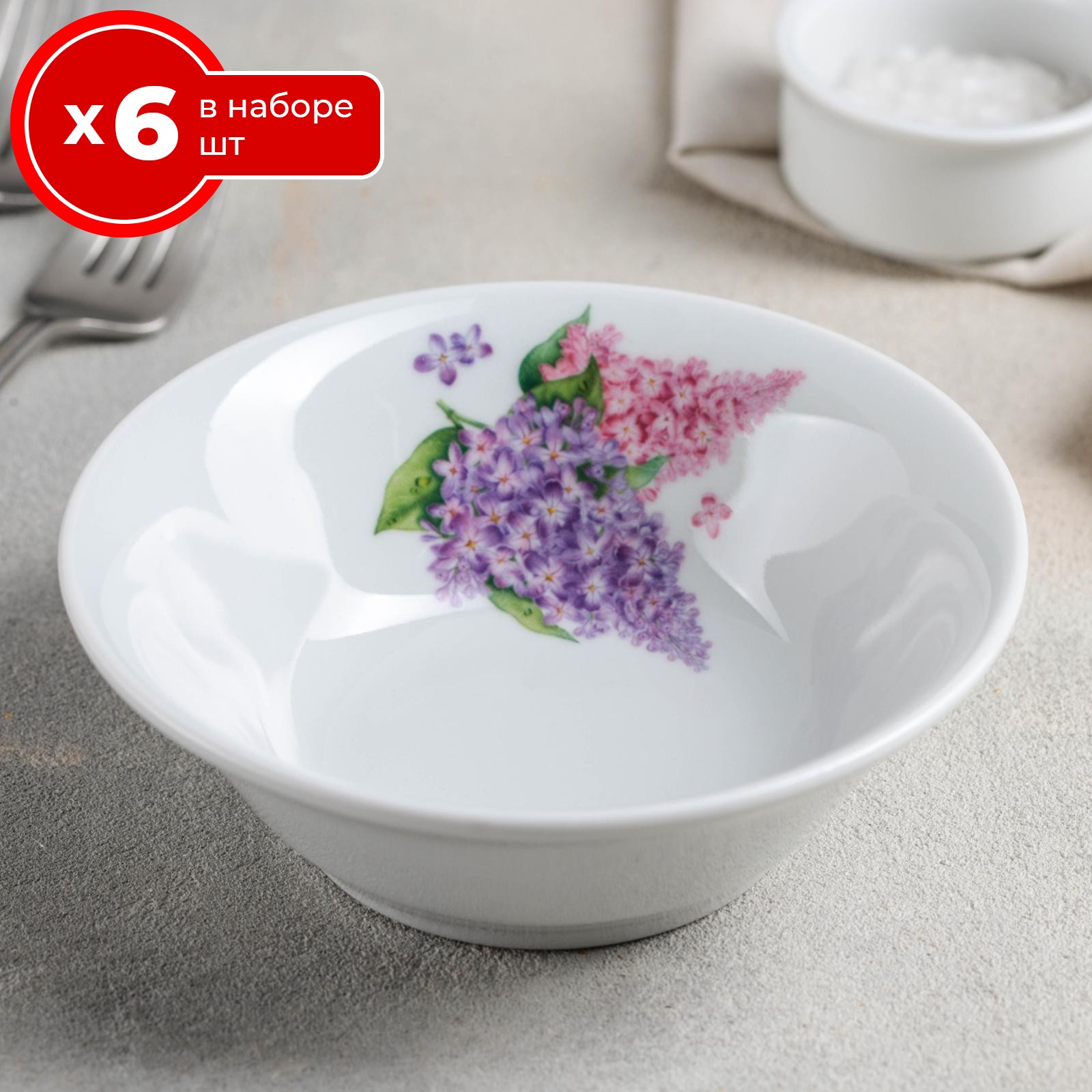 Набор салатников 6 шт добрушский фарфоровый завод сирень 14 см, фарфор, глубокие тарелки для сервировки стола, блюда