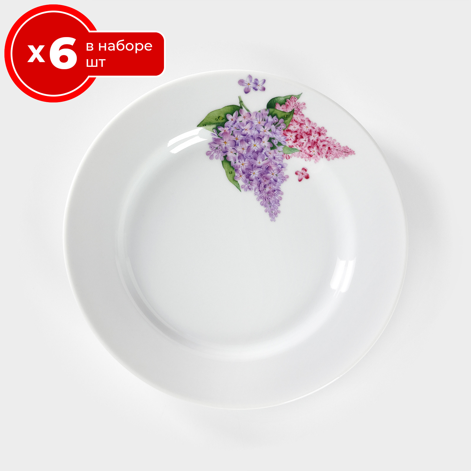 Набор тарелок 6 шт десертных обеденных 20 см на 6 персон добрушский фарфоровый завод сирень, фарфор, мелкие закусочные