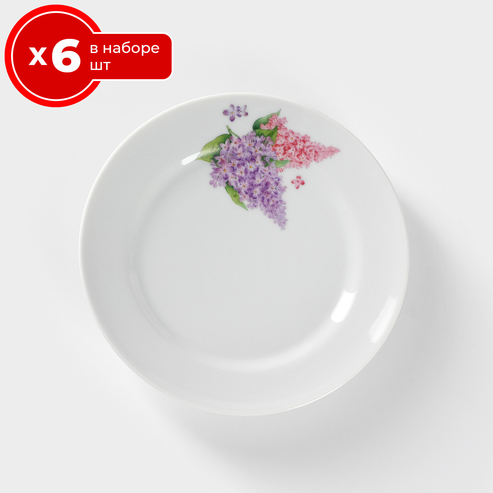 Набор тарелок 6 шт десертных закусочных 17 см на 6 персон добрушский фарфоровый завод сирень, фарфор, мелкие