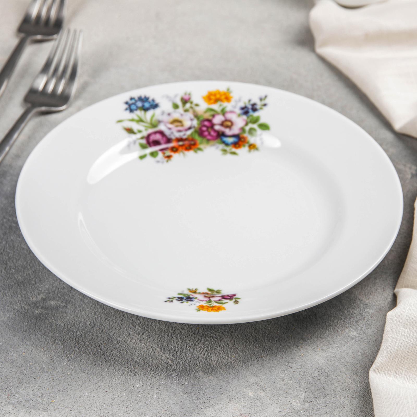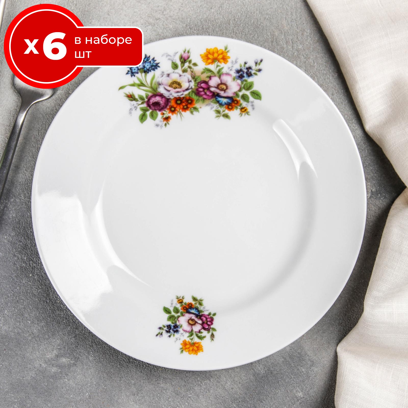 Набор тарелок 6 шт десертных обеденных 20 см на 6 персон добрушский фарфоровый завод букет цветов, фарфор, мелкие закусочные