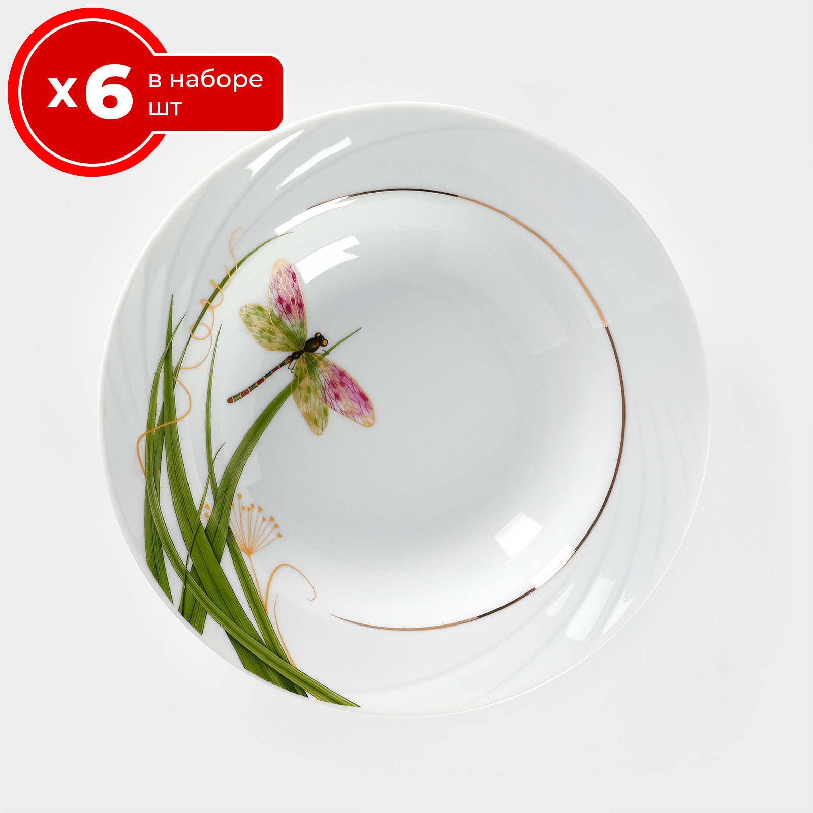 Набор тарелок 6 шт глубоких суповых 20 см на 6 персон добрушский фарфоровый завод стрекоза, фарфор