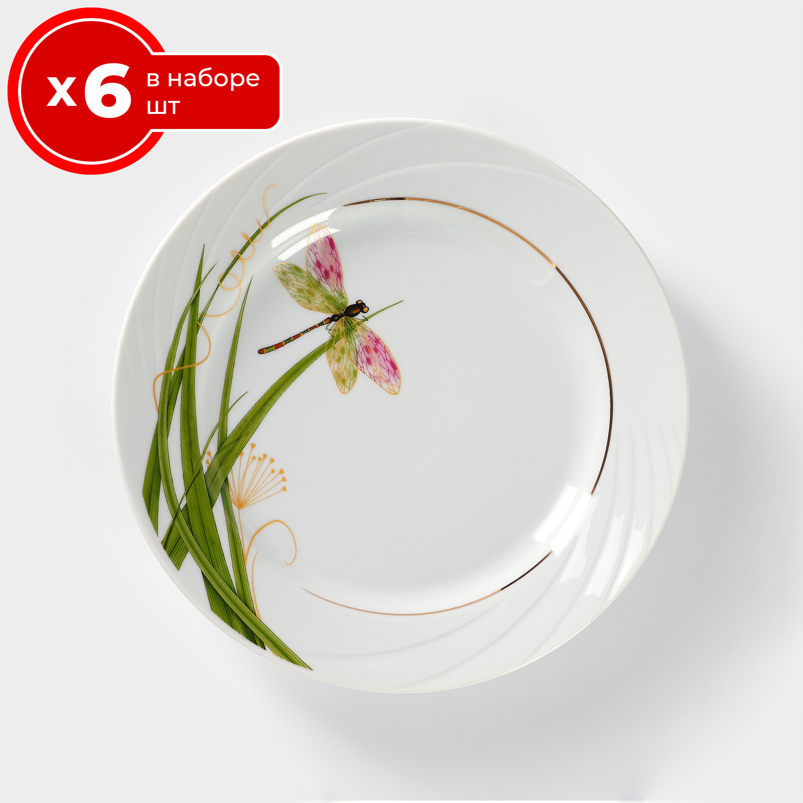 Набор тарелок 6 шт десертных обеденных 20 см на 6 персон добрушский фарфоровый завод стрекоза, фарфор, мелкие закусочные