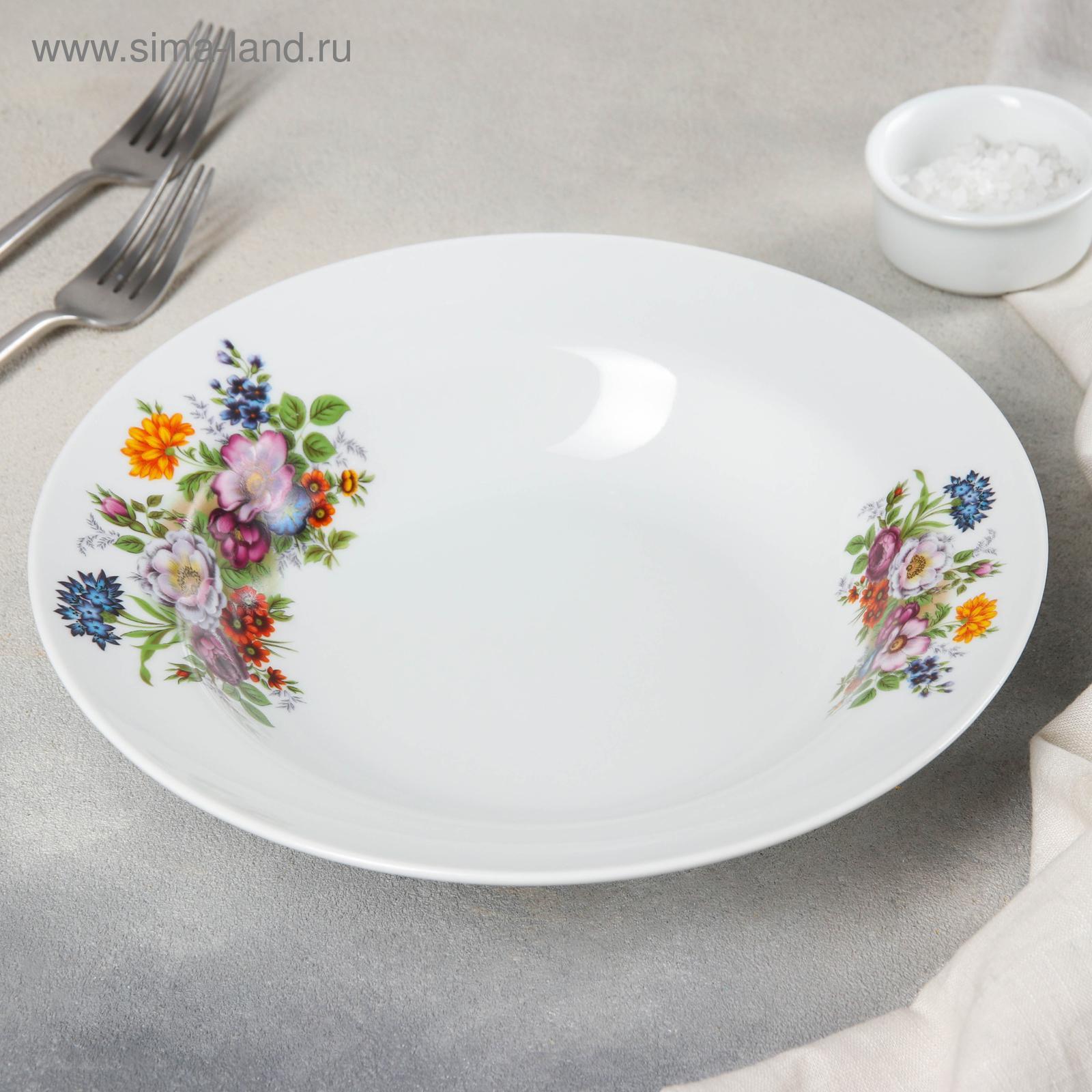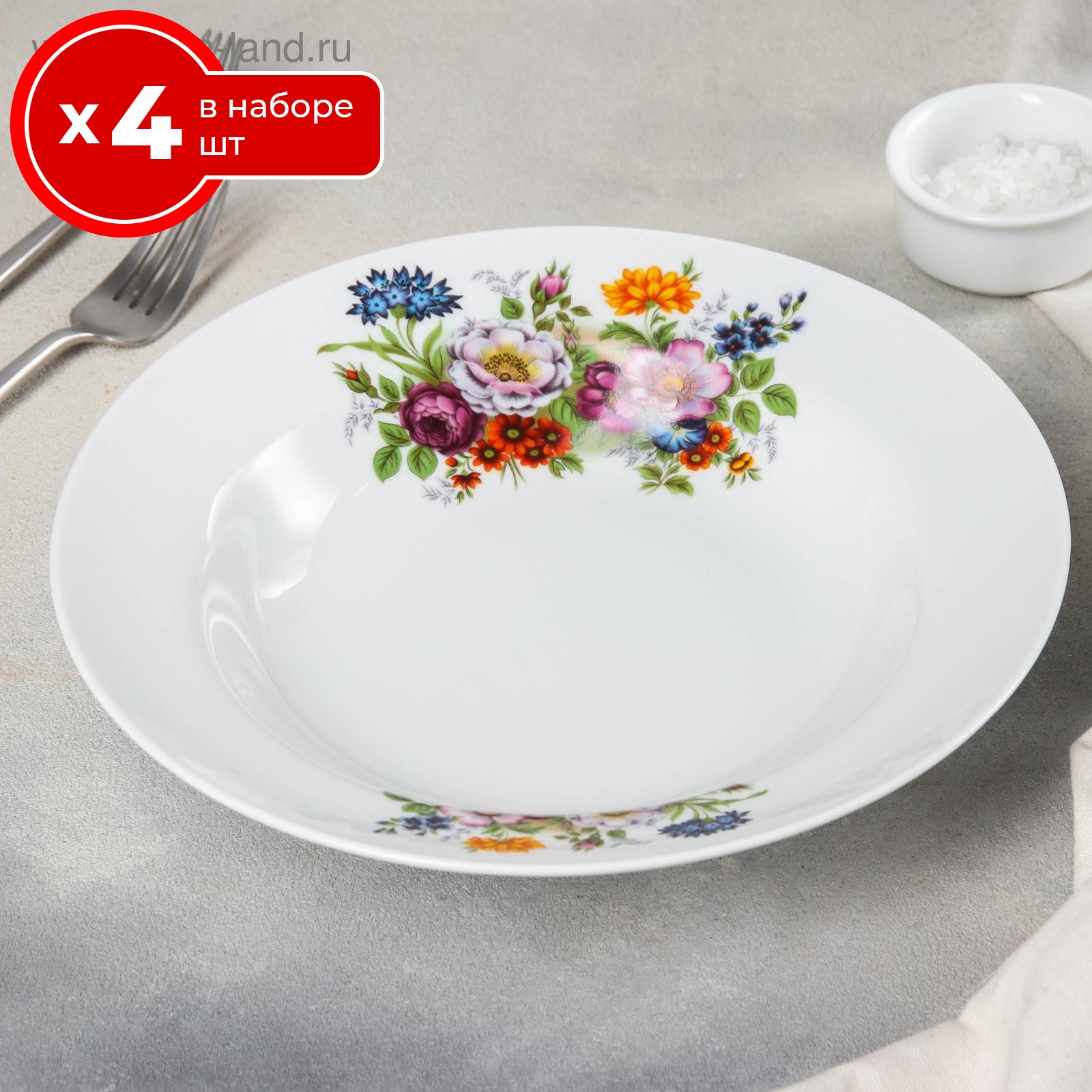 Набор тарелок 4 шт глубоких суповых 24 см на 4 персоны добрушский фарфоровый завод букет цветов, фарфор