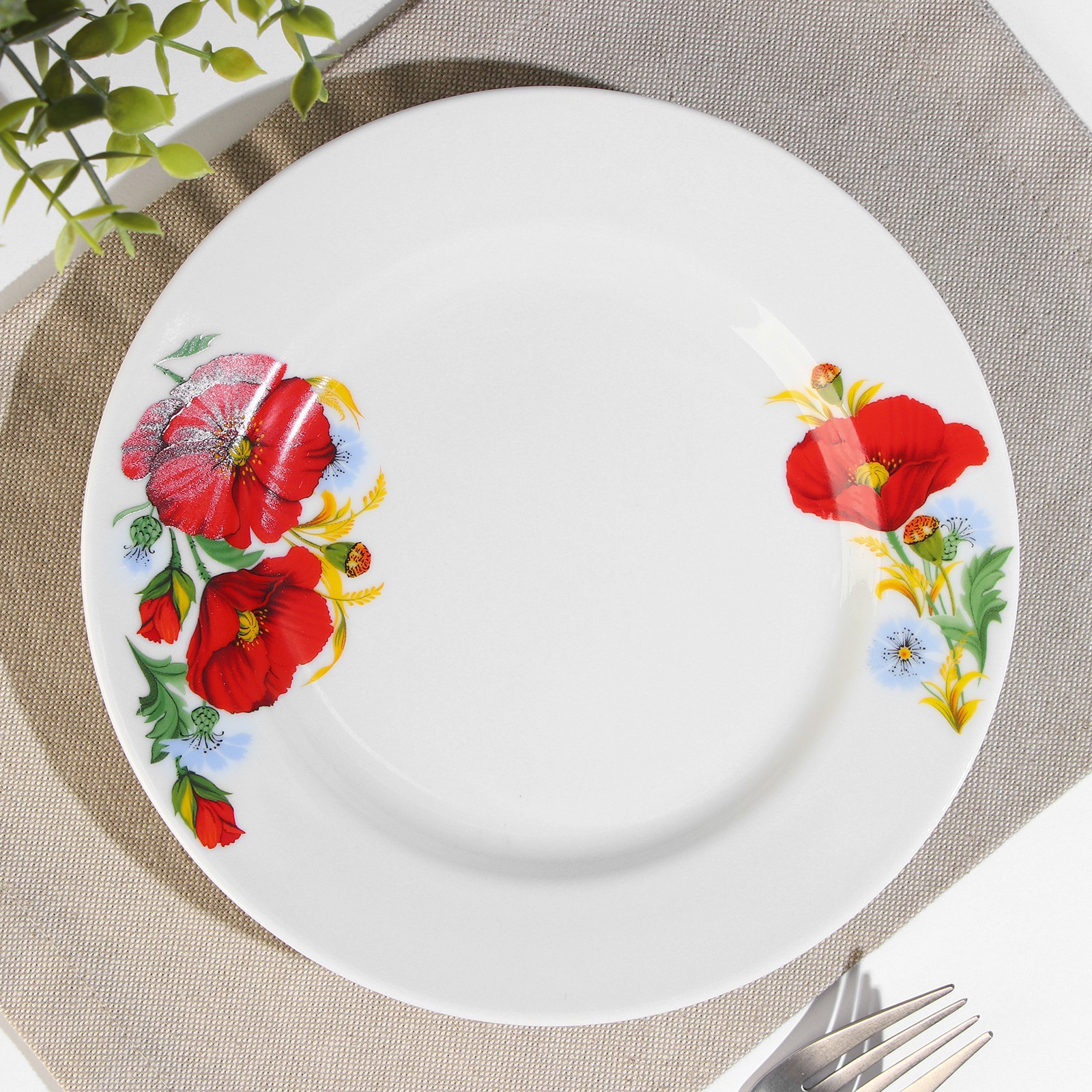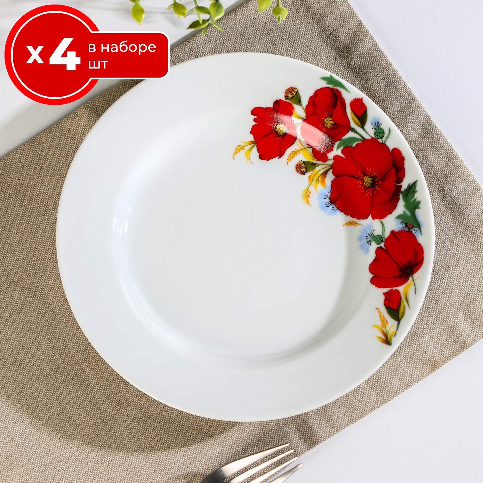 Набор тарелок 4 шт десертных обеденных 20 см на 4 персоны добрушский фарфоровый завод маки красные, фарфор, мелкие закусочные