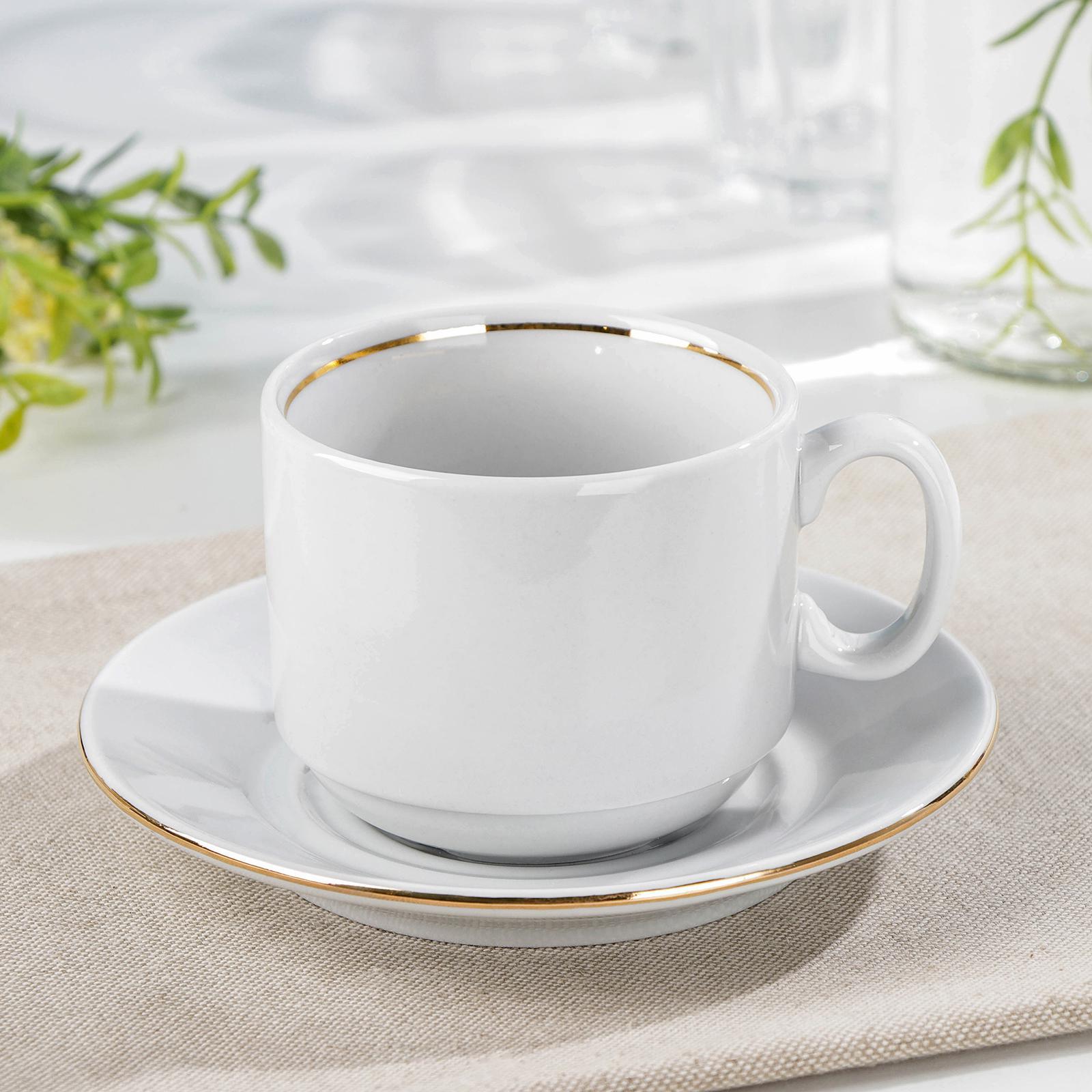 Чайная пара фарфоровая «мокко», 220 мл, блюдце D=13,7 см