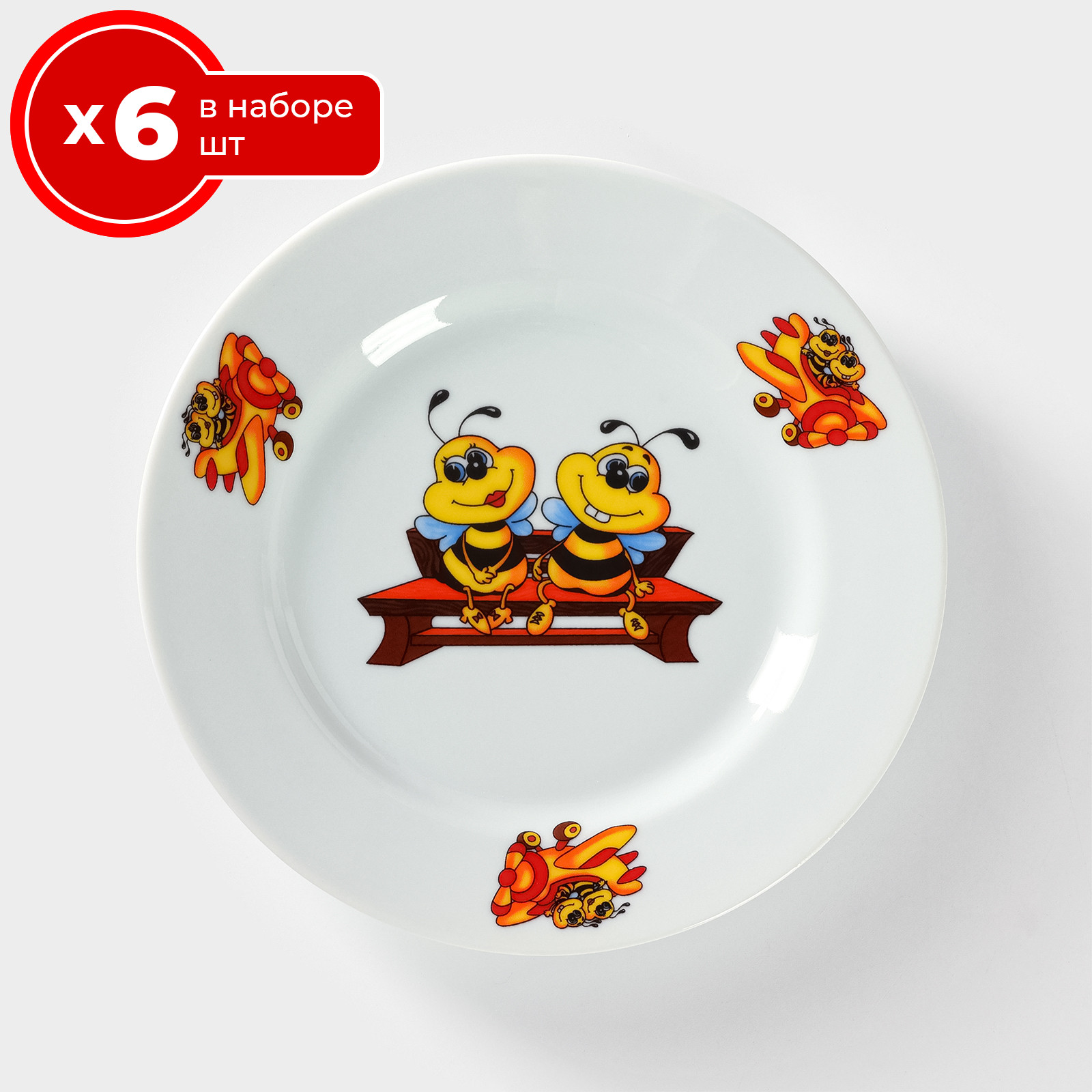 Набор тарелок 6 шт десертных обеденных 20 см на 6 персон добрушский фарфоровый завод пчёлы, фарфор, мелкие закусочные