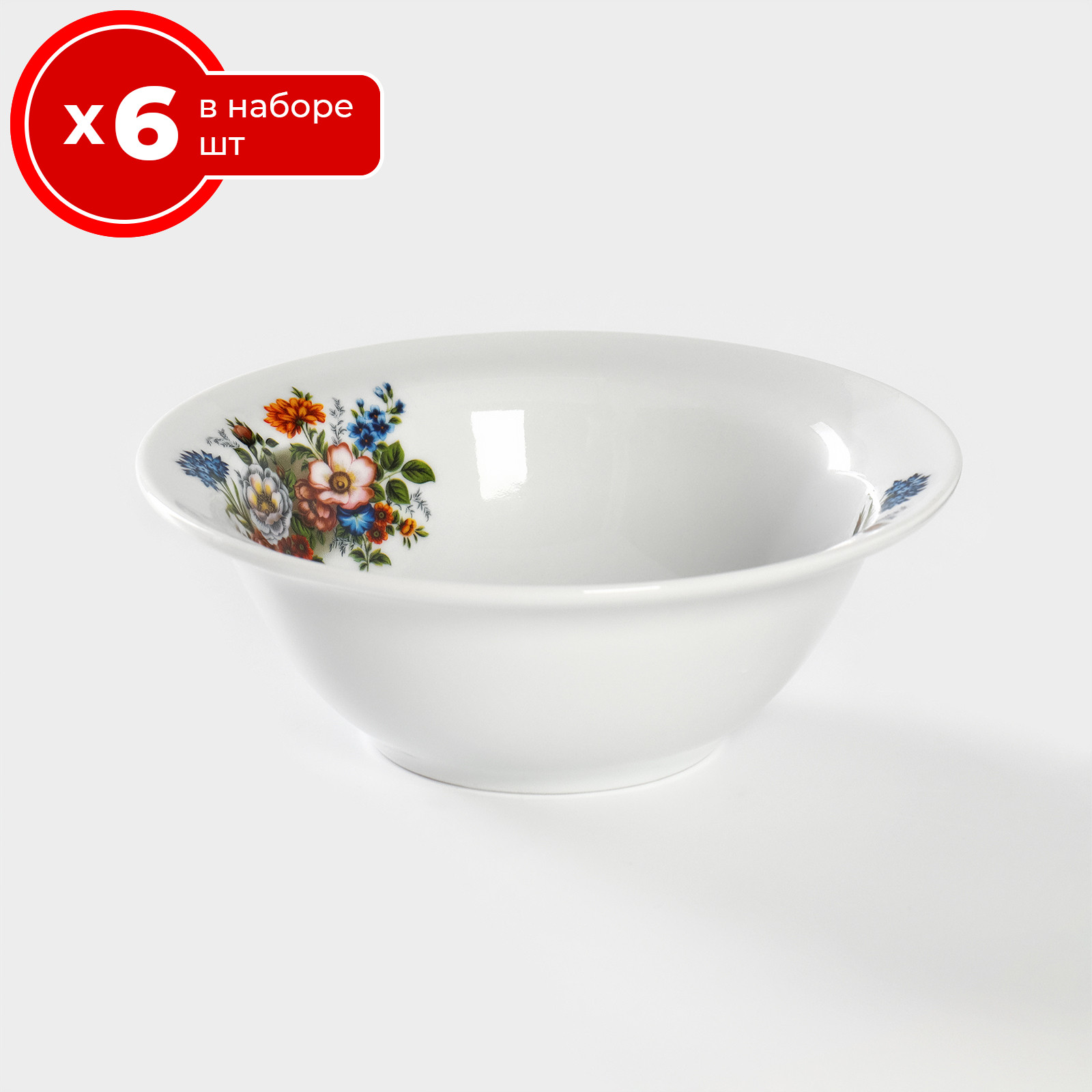 Набор тарелок 6 шт глубоких суповых 17 см на 6 персон добрушский фарфоровый завод букет цветов, фарфор