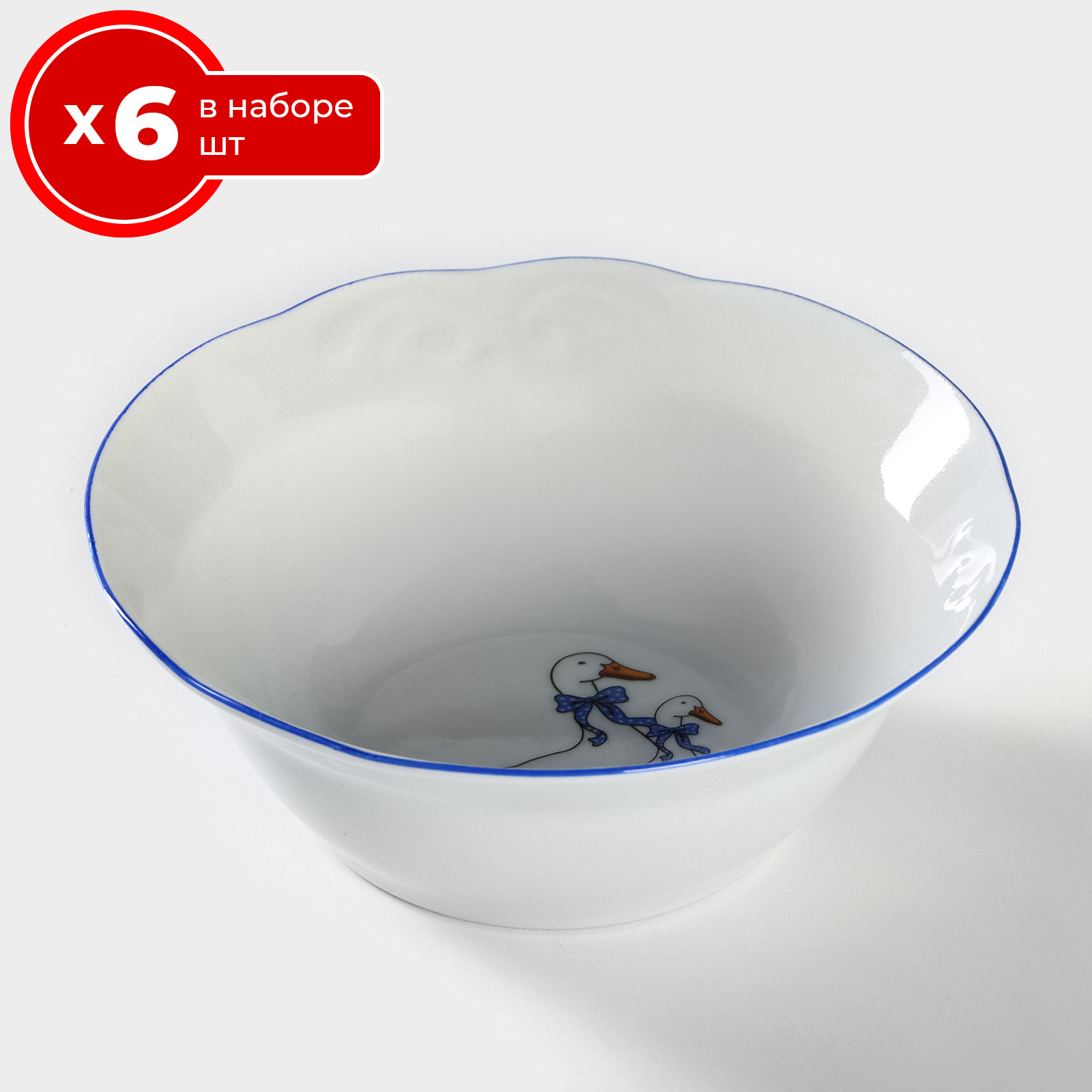 Набор салатников 6 шт добрушский фарфоровый завод гуси 14 см, фарфор, глубокие тарелки для сервировки стола, блюда