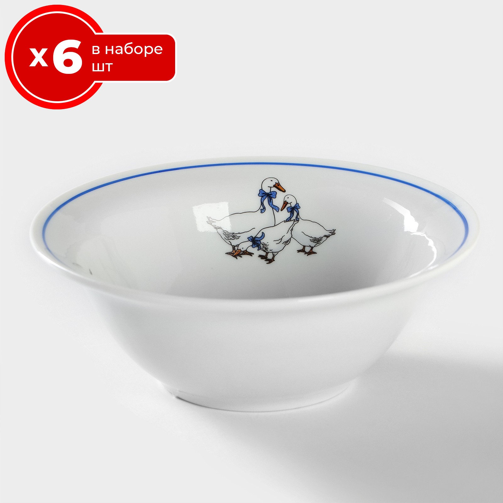 Набор тарелок 6 шт глубоких суповых 17 см на 6 персон добрушский фарфоровый завод гуси, фарфор